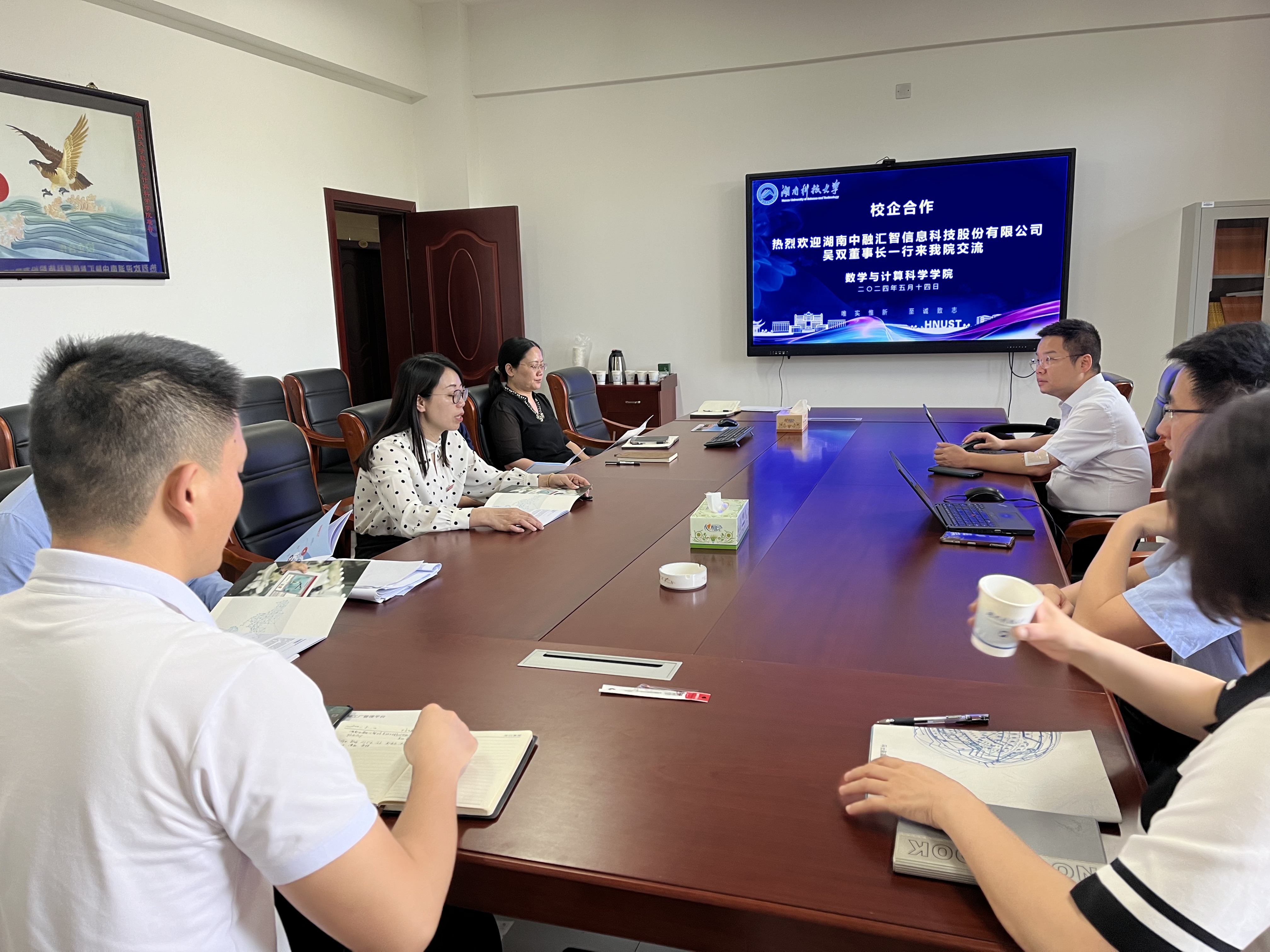 2024年5月14日下午,湖南中融汇智信息科技股份有限公司吴双董事长一行来公司交流。公司党委书记刘辉亚、主持行政工作副经理李冬梅、党委副书记刘学泳、副经理汪卫、系主任、教务办主任出席了座谈会。