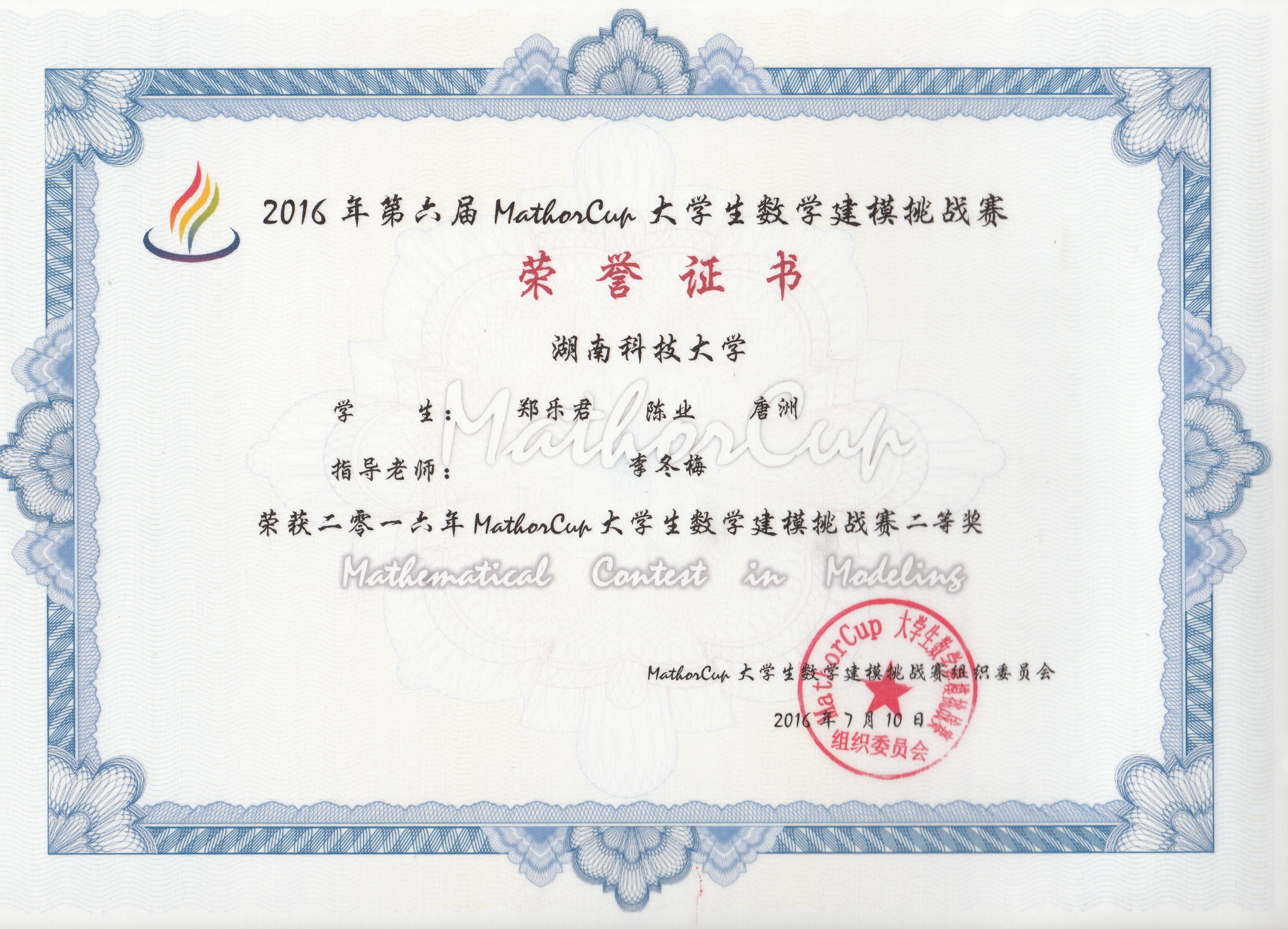 公司荣获第六届MathorCup老员工数学建模挑战赛二等奖