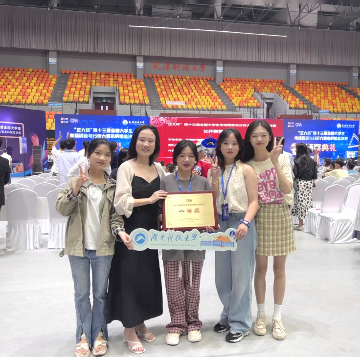 团队成员骆桑芷同学说道:“市调大赛知识涵盖面广,战线长。要特别感谢省赛国赛备战过程中,两位王老师在我们不太熟悉的PPT制作和路演答辩等方面给予了详细指导与鼓励,尹老师也对我们提出的在陌生知识领域的问题例如经济学、机器学习方面给予耐心解答,让我们拥有了不怕困难坚持前行的勇气与信心。”