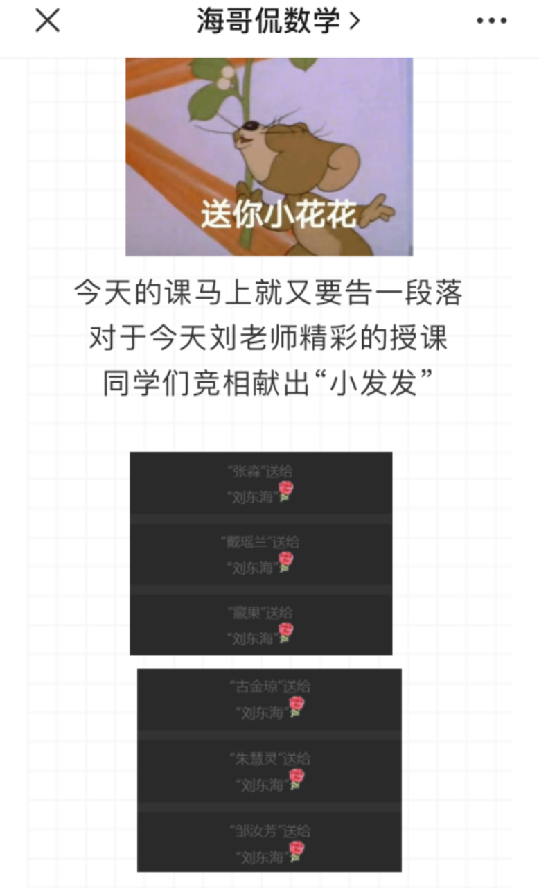 为激发员工们的兴趣,帮助员工课后巩固复习,刘老师还建立了“海哥侃数学”微信公众号,分享每堂课的精彩片段、重要知识点,师生互动……受到员工们的热捧。