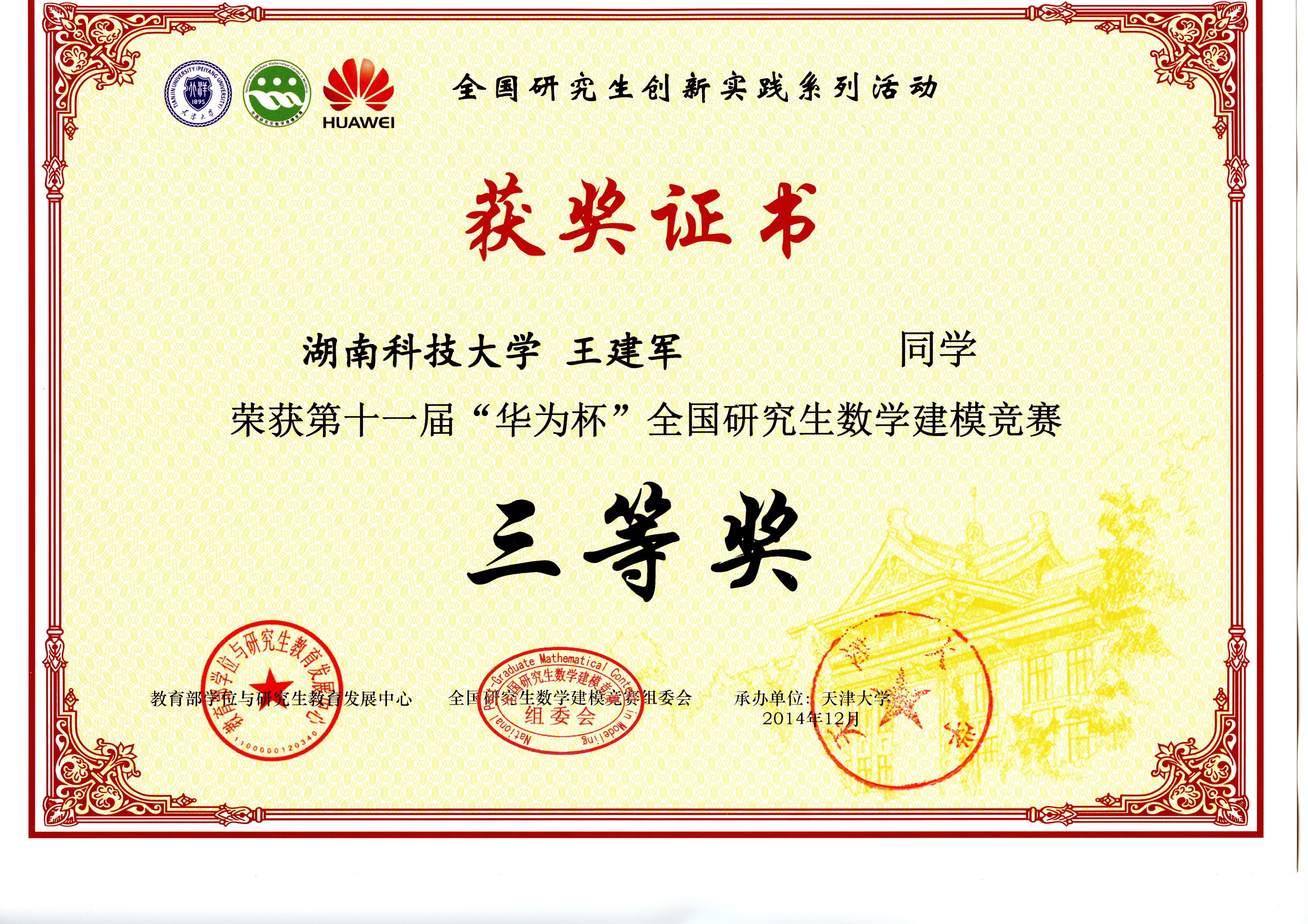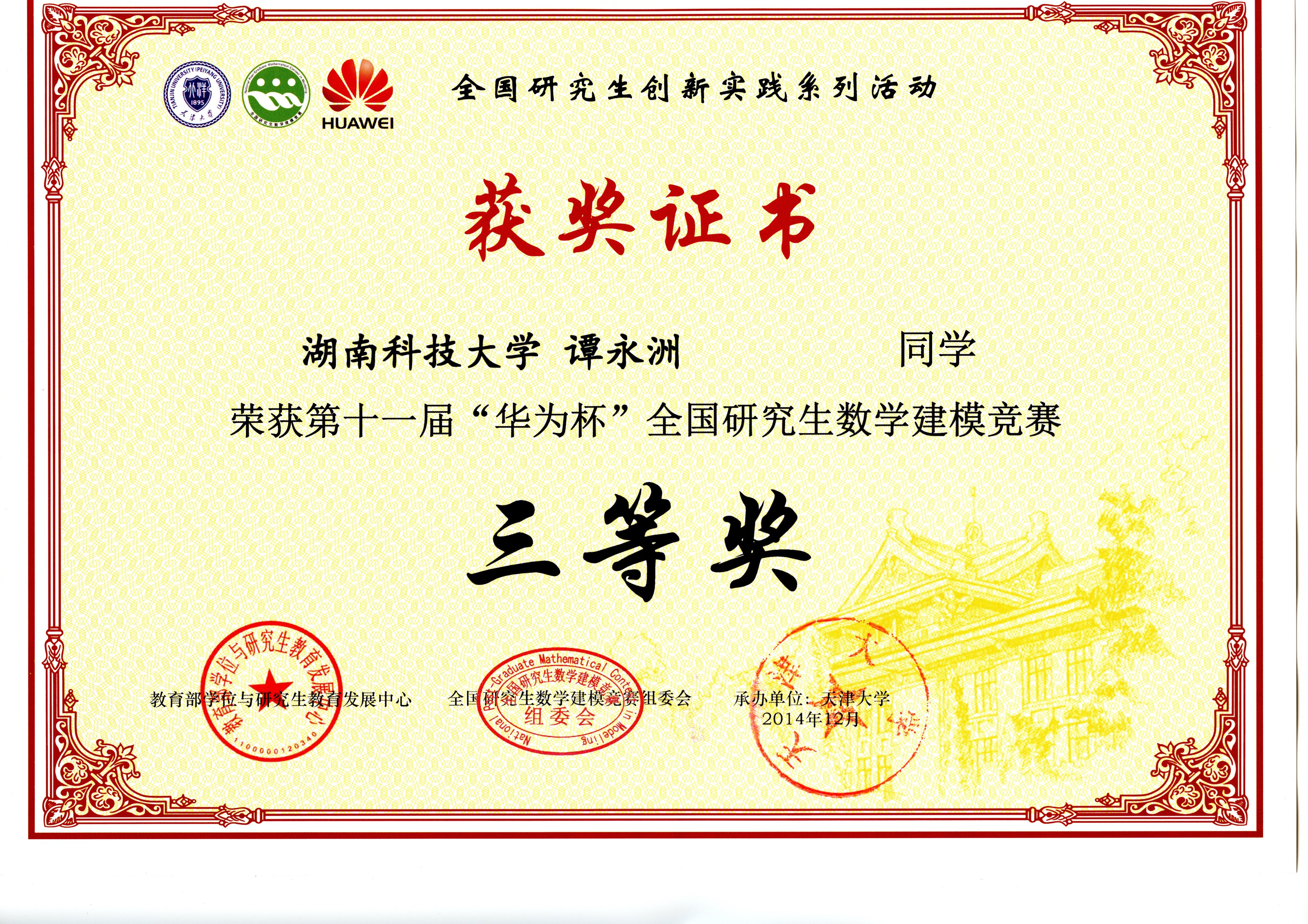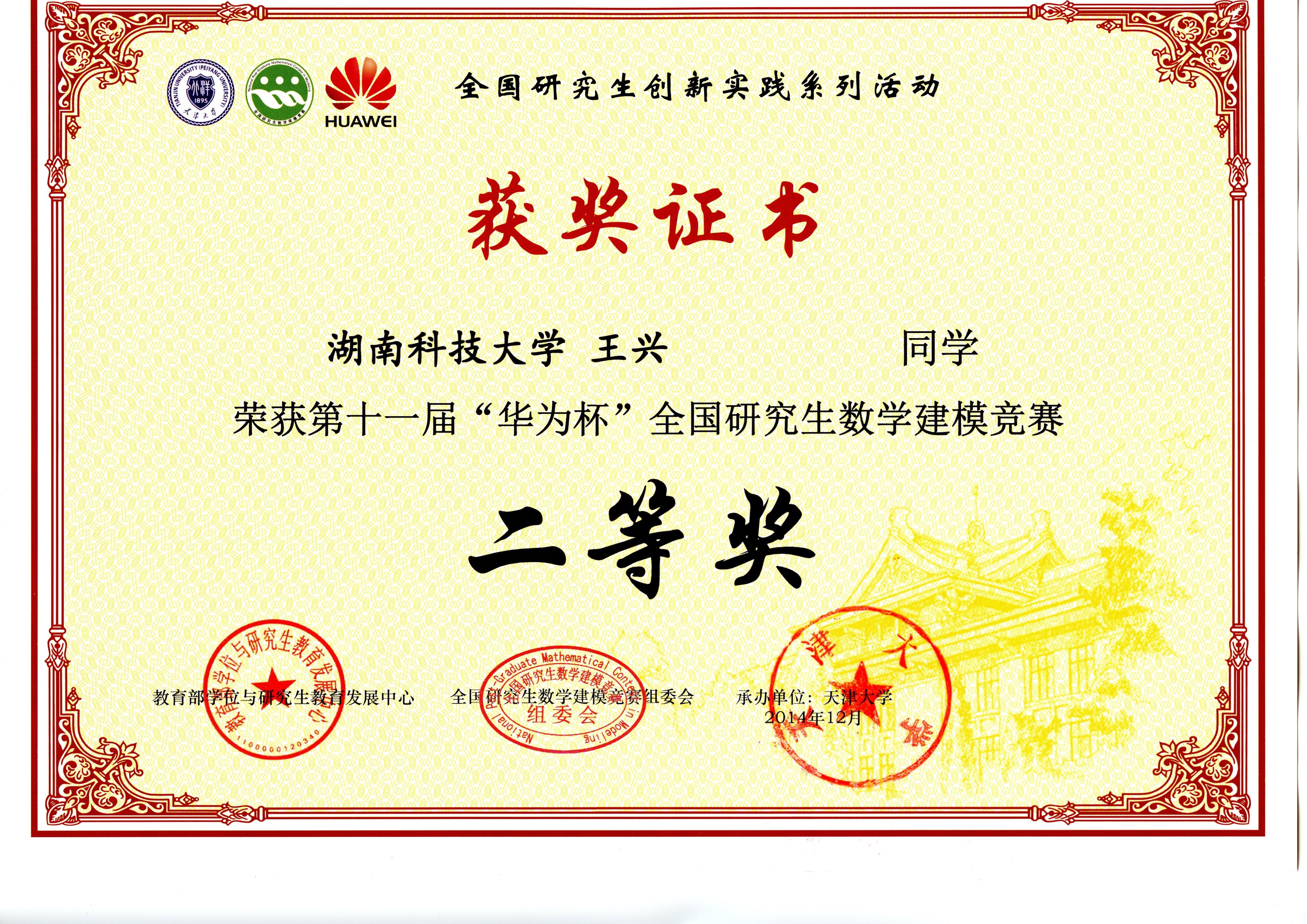 2014年全国研究生数模竞赛奖