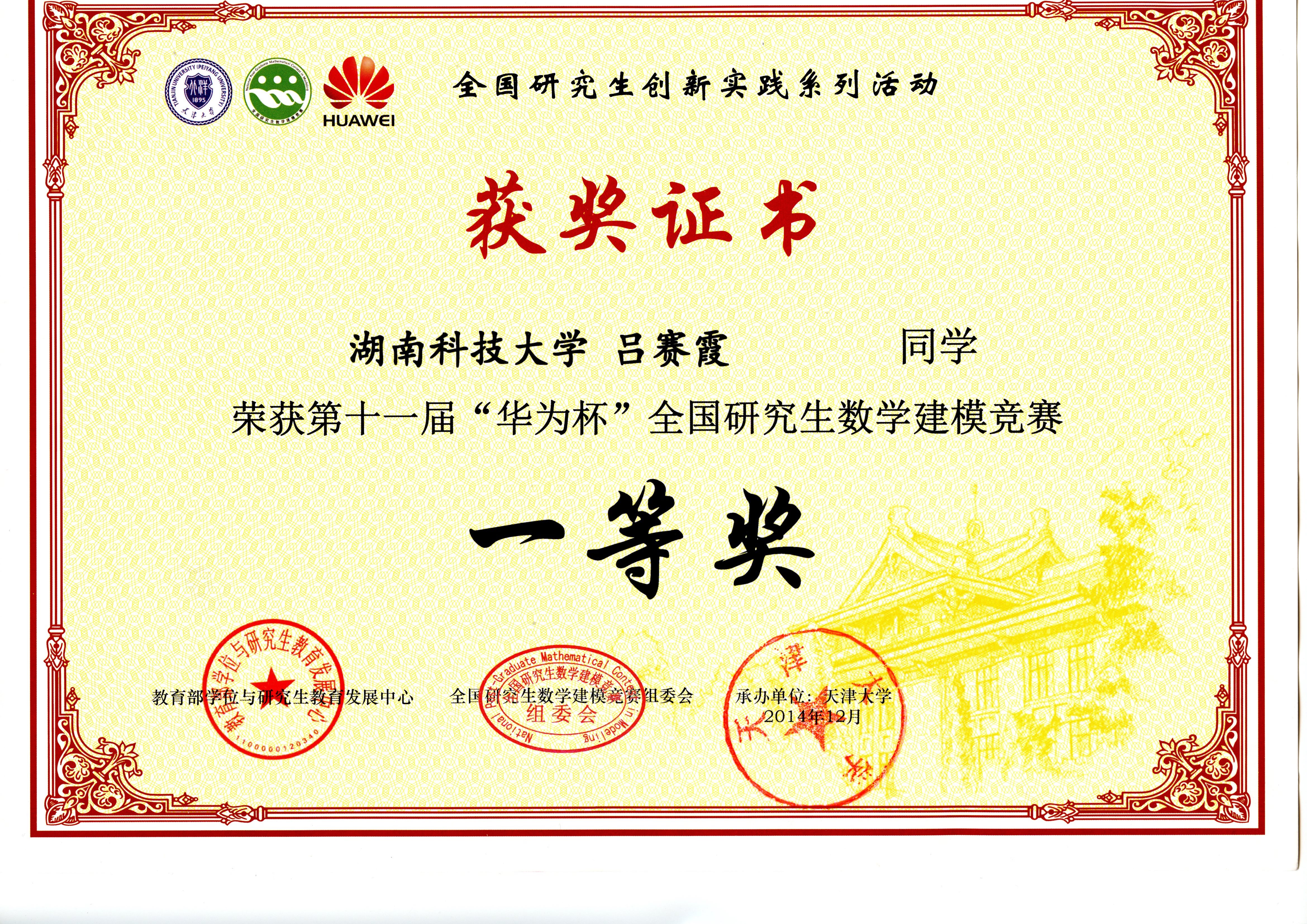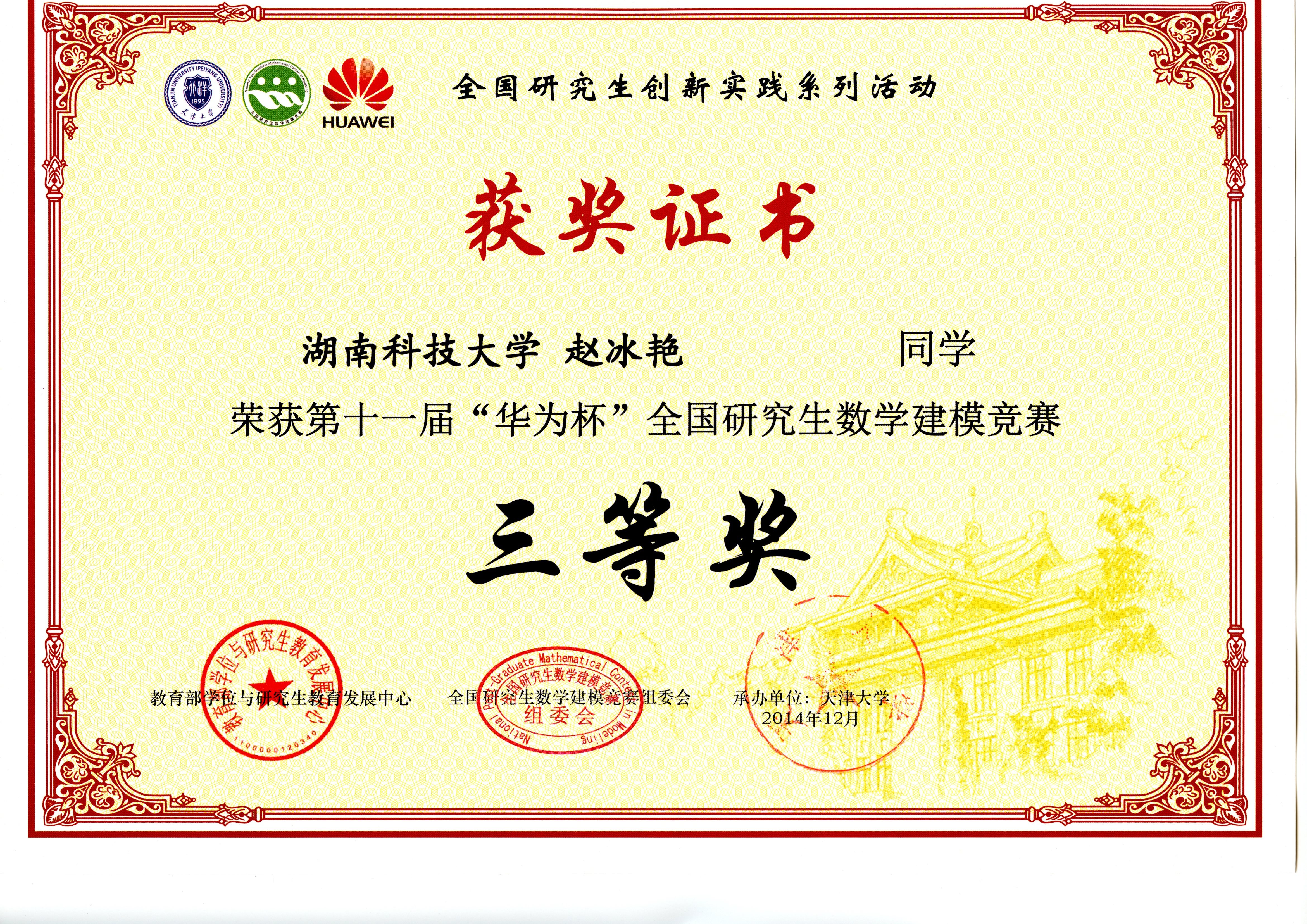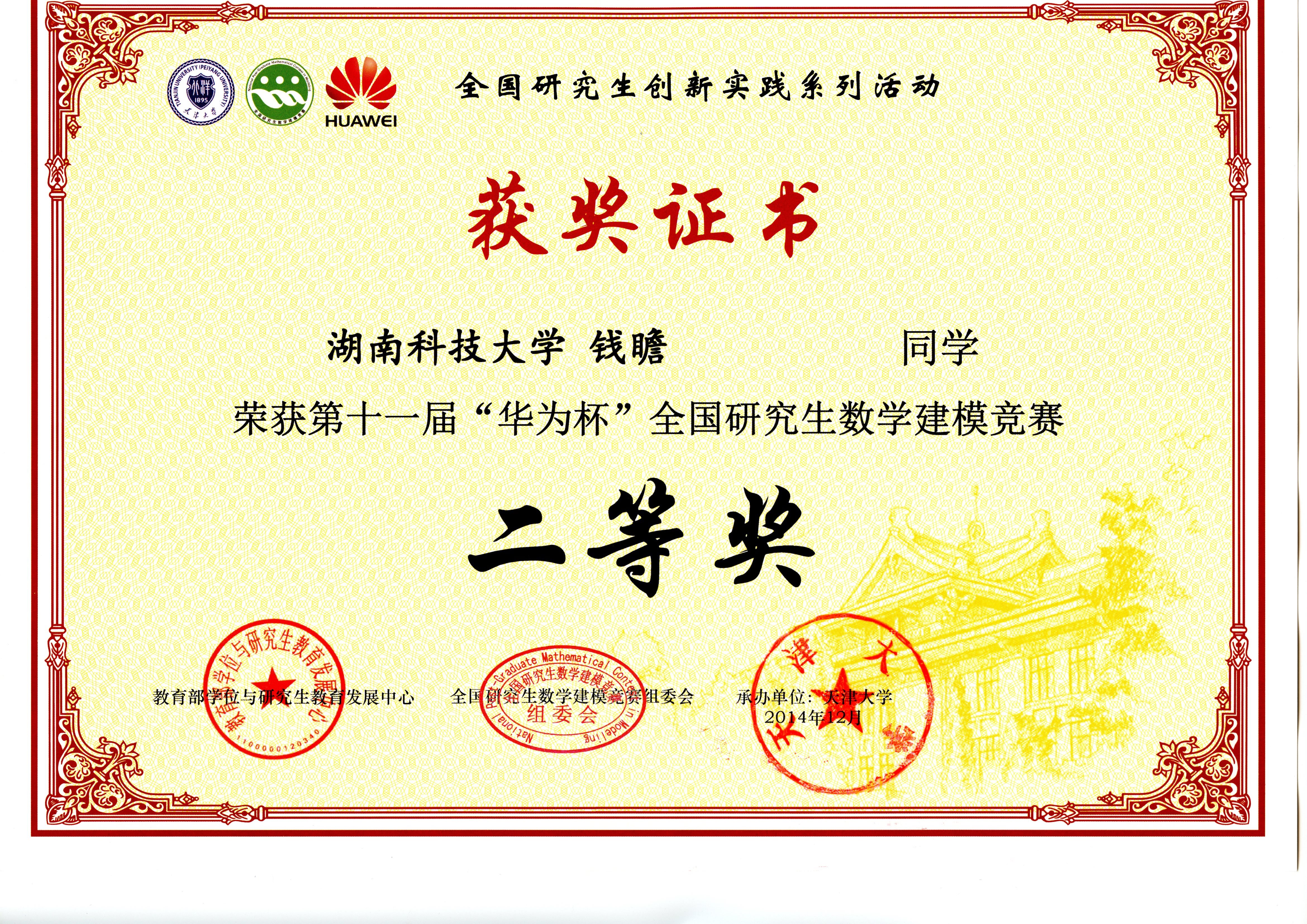 2014年全国研究生数模竞赛奖