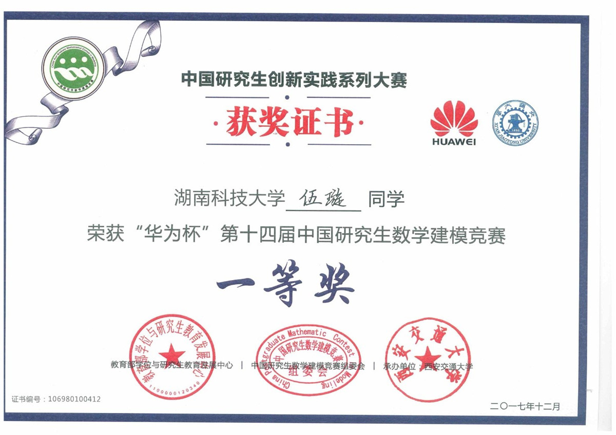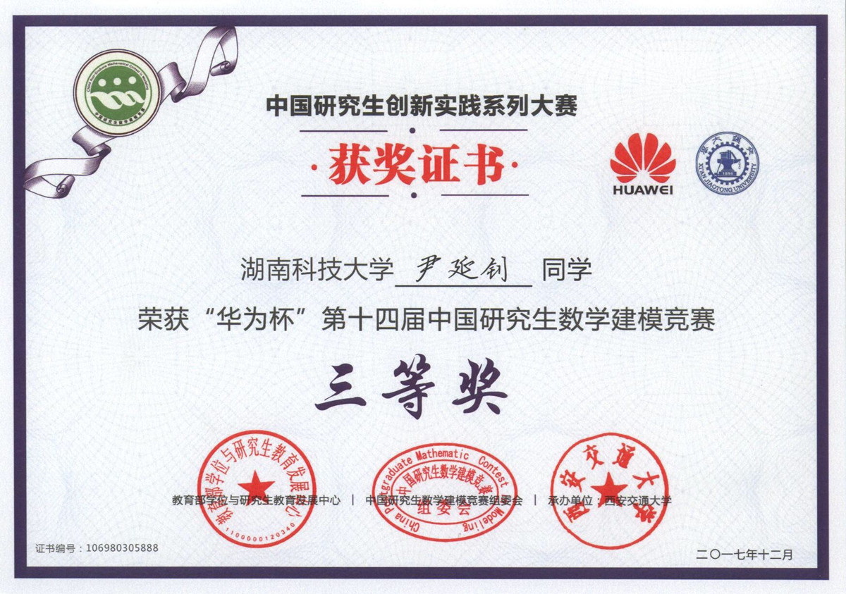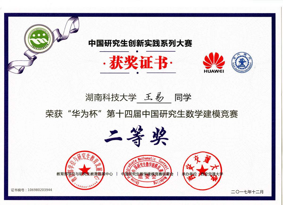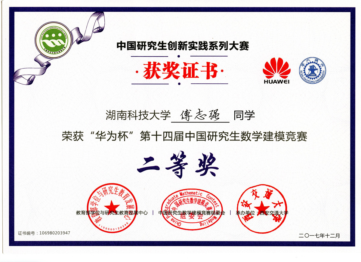 2017年全国研究生数模竞赛奖