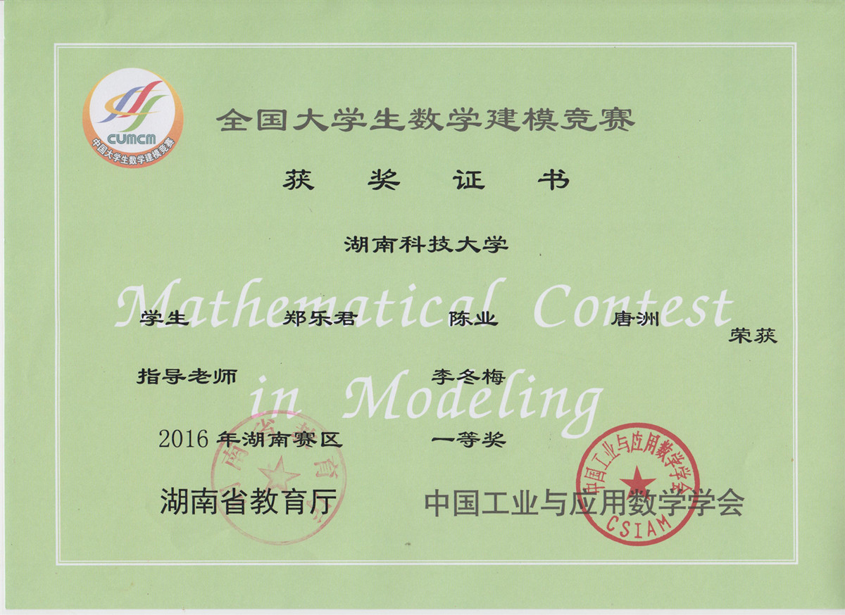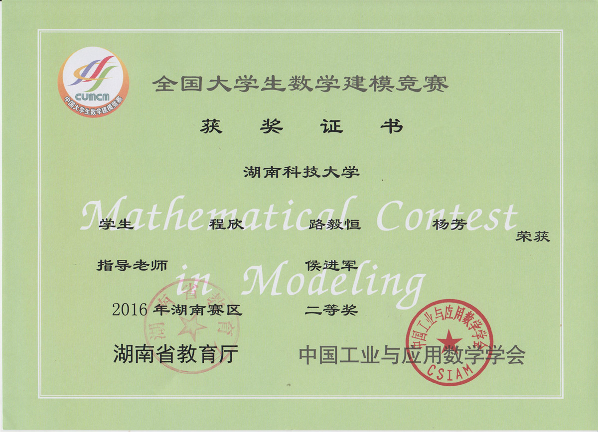 2016年老员工数模竞赛获奖