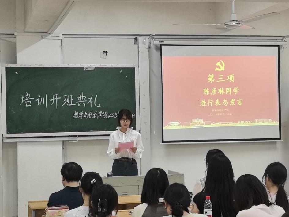 员工代表陈彦琳同学围绕自身讲述了其本人对党的理解,表达了对党的向往,并承诺以身作则积极认真地完成每一次培训。
