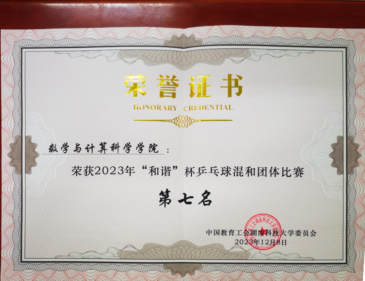 “和谐”杯乒乓球混合团体比赛奖