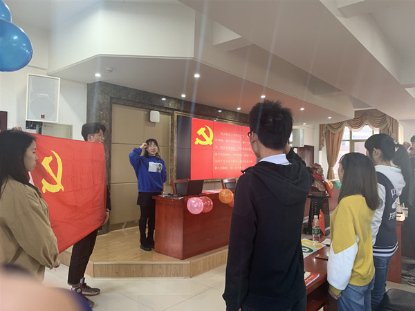 知识抢答赛开始前,员工第一党支部副书记陈意炜带领全体党员重温入党誓词。全体党员面向党旗,右手握拳置于太阳穴侧,进行庄严宣誓,每位党员用发自内心的声音抒发对党忠诚的决心。