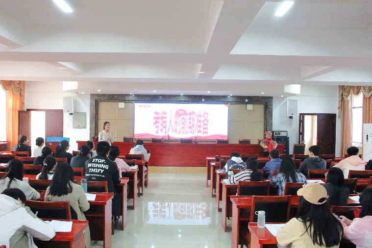 陈创老师就“向下扎根,向上生长”主题进行了具体讲解和指导。从考编的前期准备出发,分别讲解了笔试和面试两个方面的必要准备。此外,陈创老师还分享了自己的经验,有外出学习、参加比赛和找对师傅等方法,提出以发展的眼光看生活。
