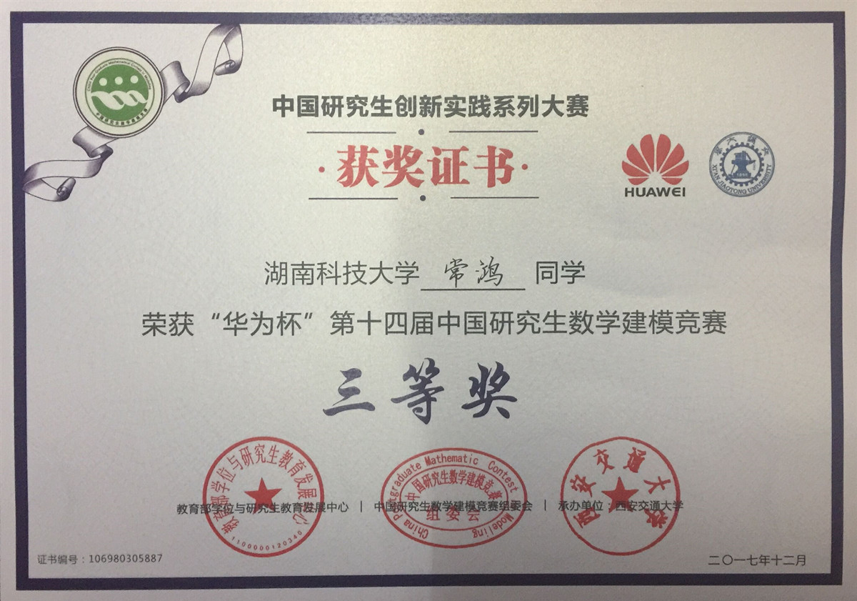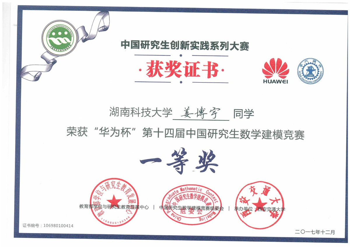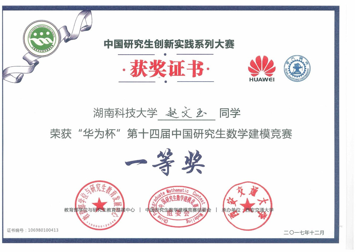 2017年全国研究生数模竞赛奖
