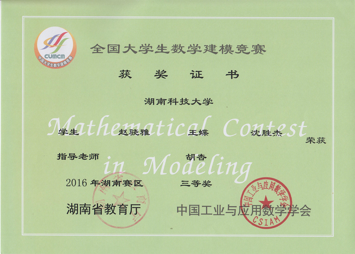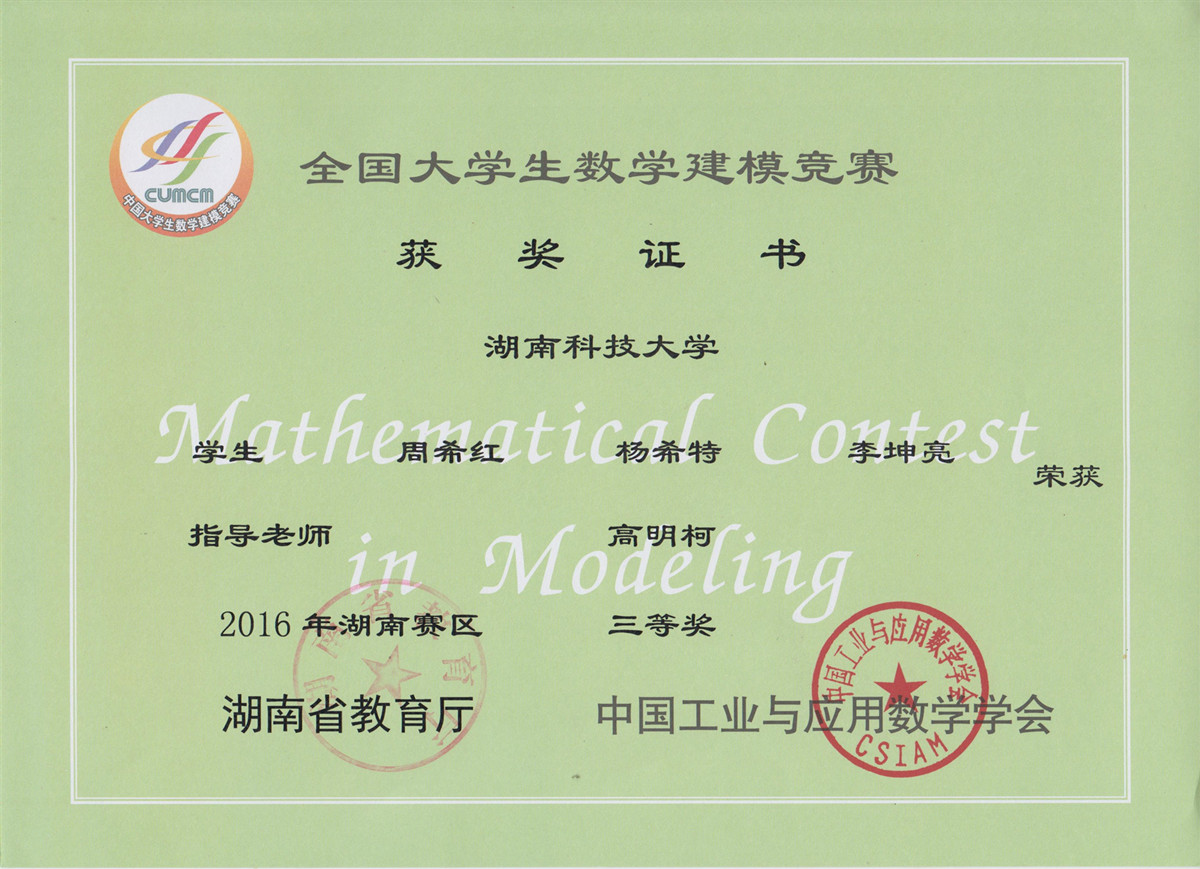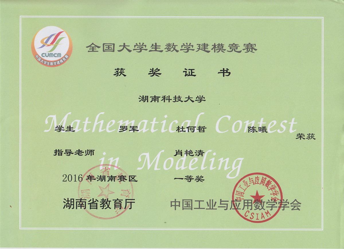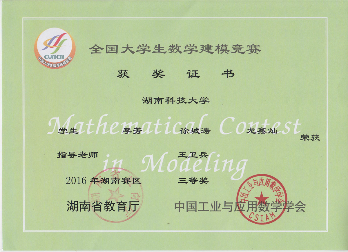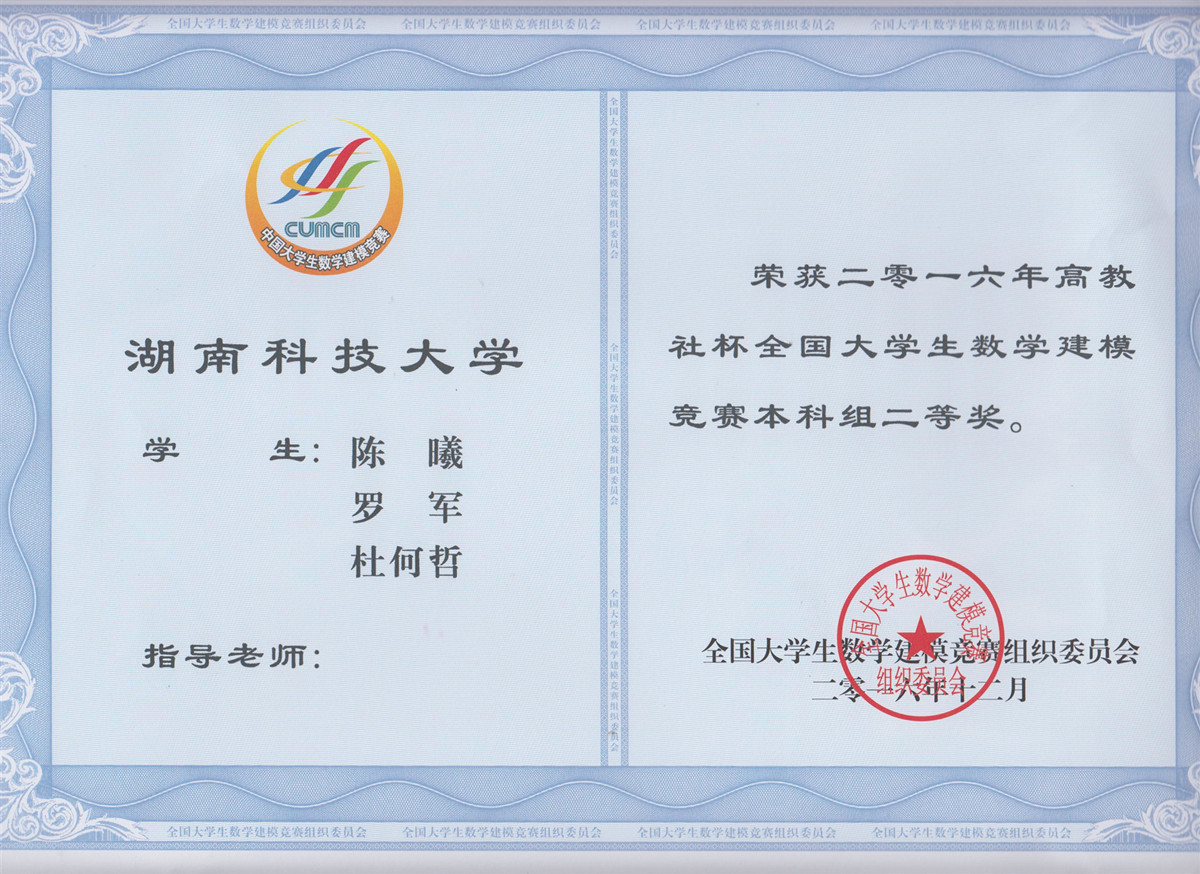 2016年老员工数模竞赛获奖