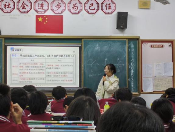 随后,领导们一同移步第三教学楼,听取了两位实习生王乐和黄榕梨的汇报课。两位均讲了《函数的表示法(第一课时)》。在课堂中,实习老师们举手投足间都尽显自信与自然,课堂氛围活跃,员工听课积极性很高。