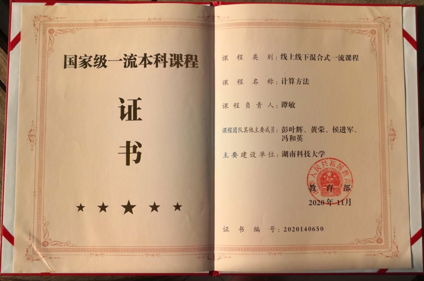 国家级线上线下混合式一流课程: