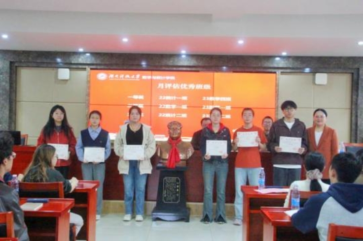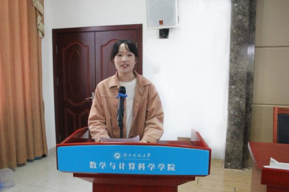 21级数学与应用数学一班团支书张典作为校“十佳班级”代表进行报告。张典指出,在班主任赵前程副董事长的鼓励下,数学一班具备高度班级荣誉感,四年时间奋发图强,该集体的奋斗轨迹体现出数院学子积极向上的精神风貌。