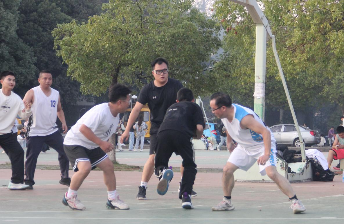 地平线点点吞噬着太阳,光影越拉越长,比赛仍激烈地进行着。虽然汗水虽浸透了球服,但球场奔跑的师生们的比赛热情却未减半分。每个人的注意力都高度集中,紧盯对手,趁机抢断,找准机会,接球上篮,最后完美落框得分!