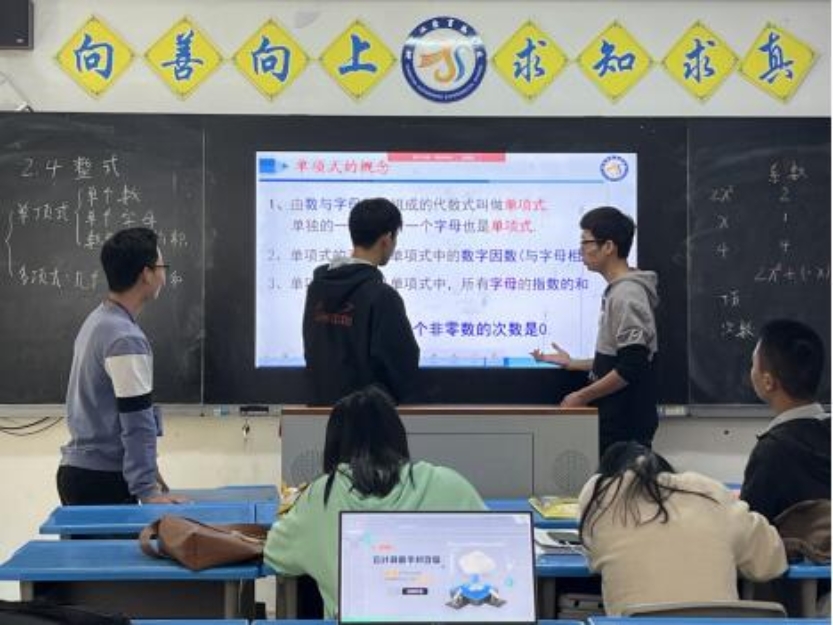 实习带队老师丁爱霞老师精心安排了本次公开汇报课——由实习队的陶鹏旭讲授七年级上册的《整式》,邀请了公司领导老师和以张频董事长为代表的多位经验丰富的江声实验公司老师前来检查和指导。