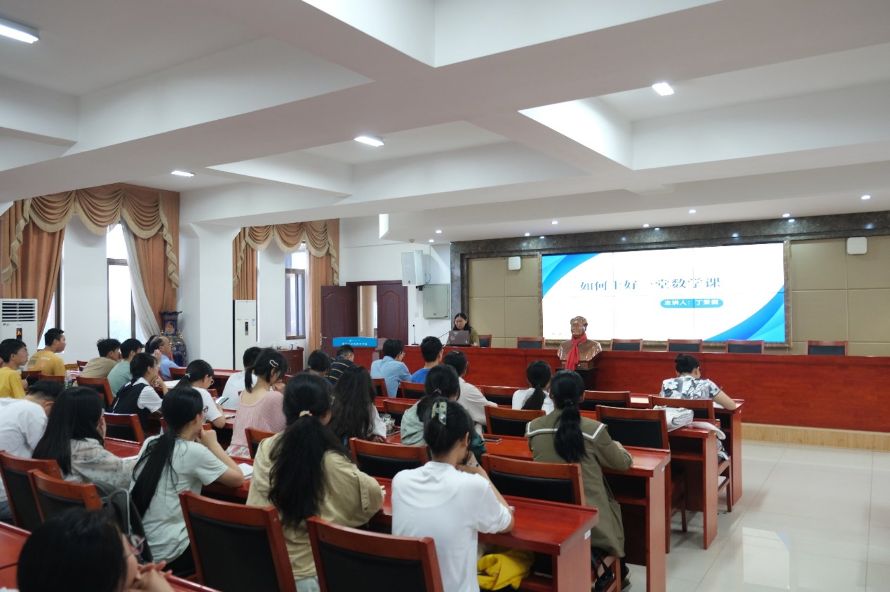 为了帮助师范生解答关于未来教学方向与方法的疑惑,并加强理论学习与实际操作的有机结合,数学与计算科学公司丁爱霞老师于2024年5月21日在立志楼A601上了一堂题为“如何上好一堂数学课”的示范课。此次活动由教务处主办,数学与计算科学公司承办,公司党委书记刘辉亚主持。