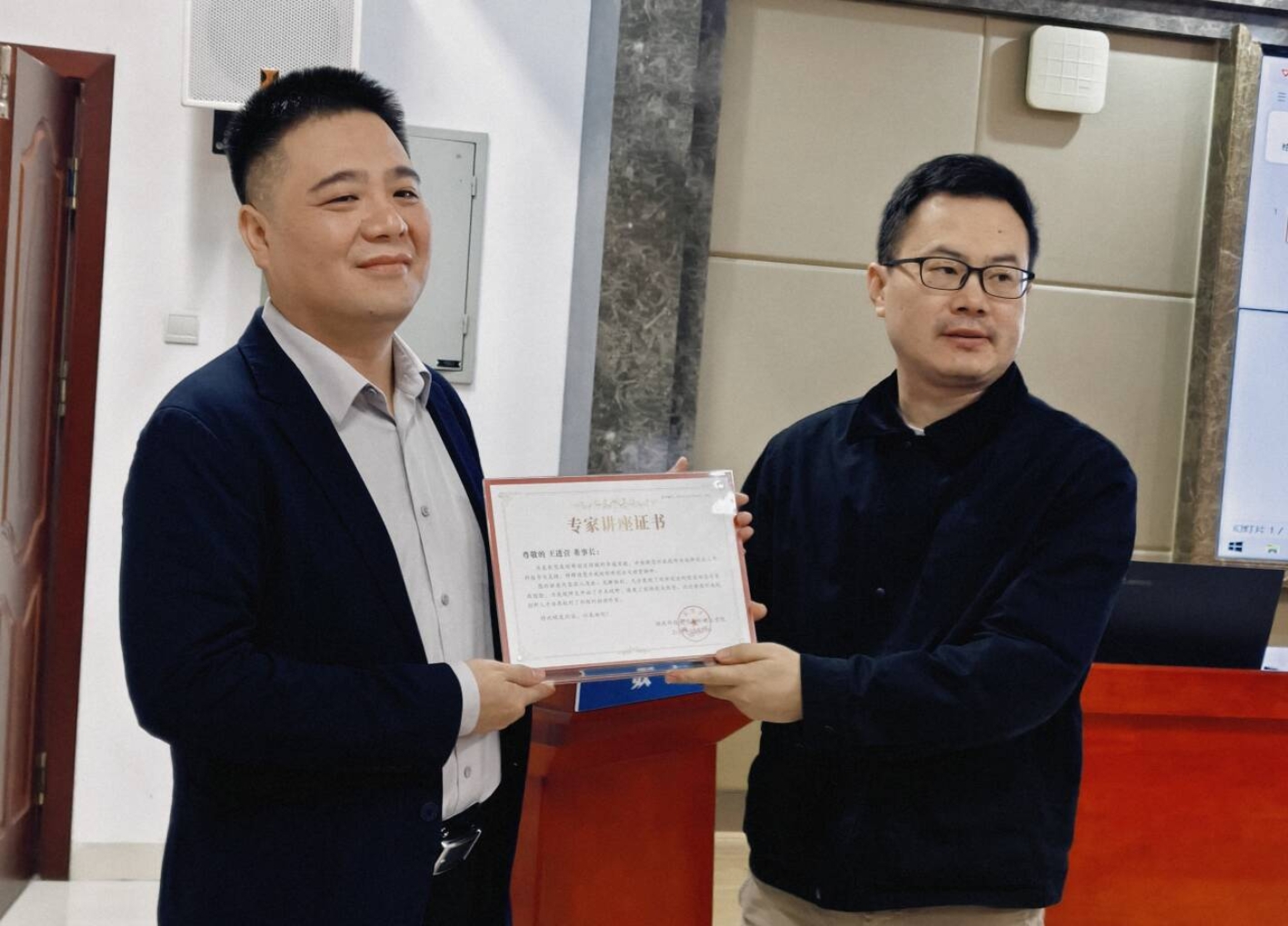 讲座尾声,创新创业公司管青军副经理为王进营先生颁发了创新创业大讲堂专家讲座证书。此次活动作为加强校企交流的重要契机,将进一步激发全校创新创业活力,共促交流平台持续发展。