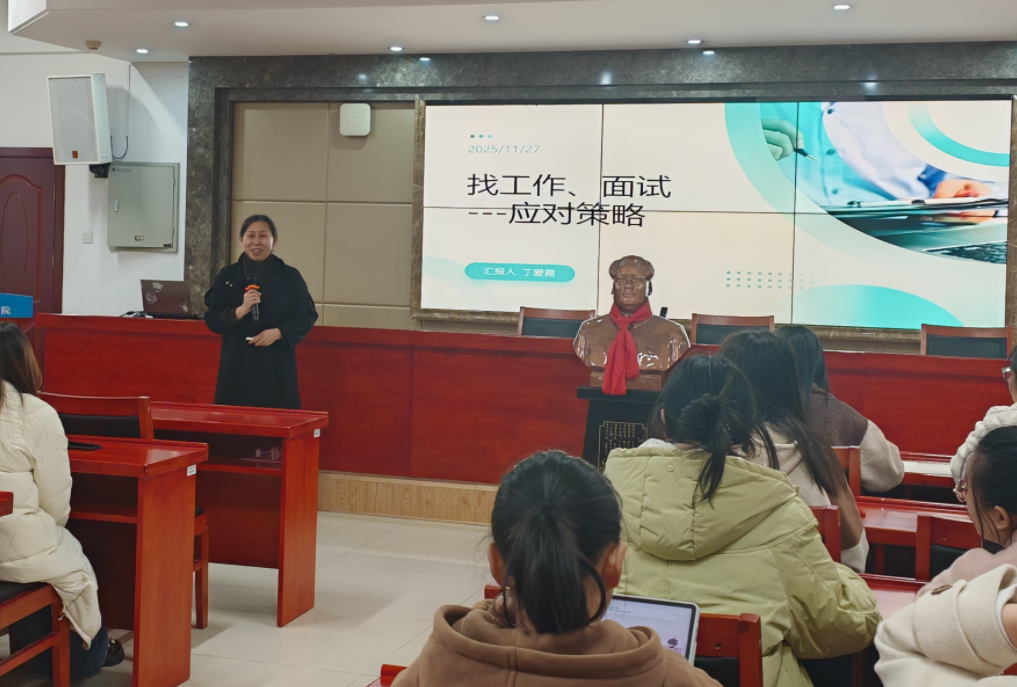 讲座特邀公司数学与应用数学系副主任丁爱霞与就业专干朱胡萌老师进行经验分享。朱胡萌老师对数学师范生就业形势进行了深度剖析,为同学们把握就业方向、掌握求职技巧提供了清晰指引。