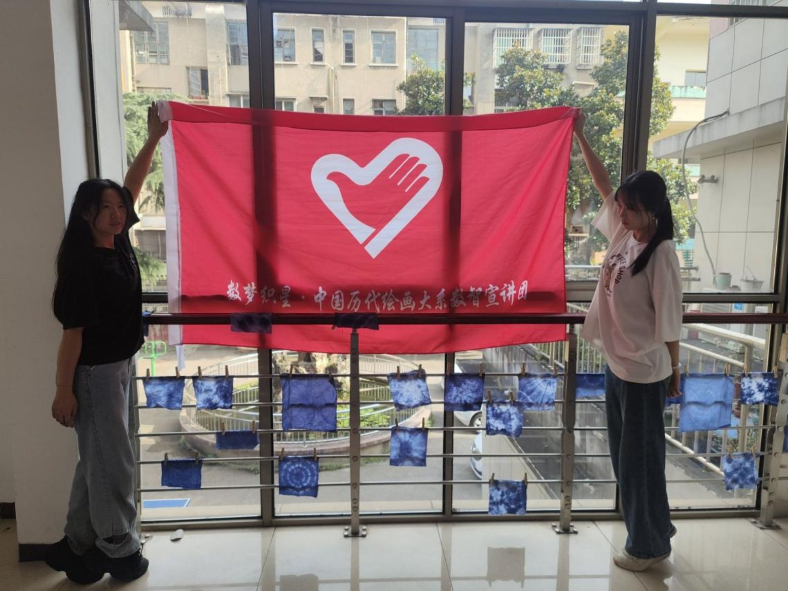 为强化儿童文化底蕴,继承与光大中华优秀传统文化之精髓,7月8日,永利3044集团官网数学与计算科学公司数梦织星·中国历代绘画大系数智宣讲团作为公司在2024年团中央“中国历代绘画大系”志愿宣讲项目唯一入选团队与“雨湖红”志愿服务团队共联合开展"绘出文化之美,爱语扎染的情深意长"活动,组织雪园社区公司暑假班的小朋友们编织出一幅壮丽的文化长卷。