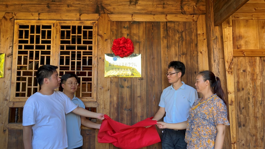 城步县文旅局驻蓬瀛村第一书记胡华利、蓬瀛村村委主任杨菊玉、数学与计算科学公司团委书记张翼以及数梦空间志愿服务队全体成员参加此次“红色教育实践基地”揭牌仪式,共同搭建校地联合开展党史教育学习平台,拓展红色基因传承的第二课堂。