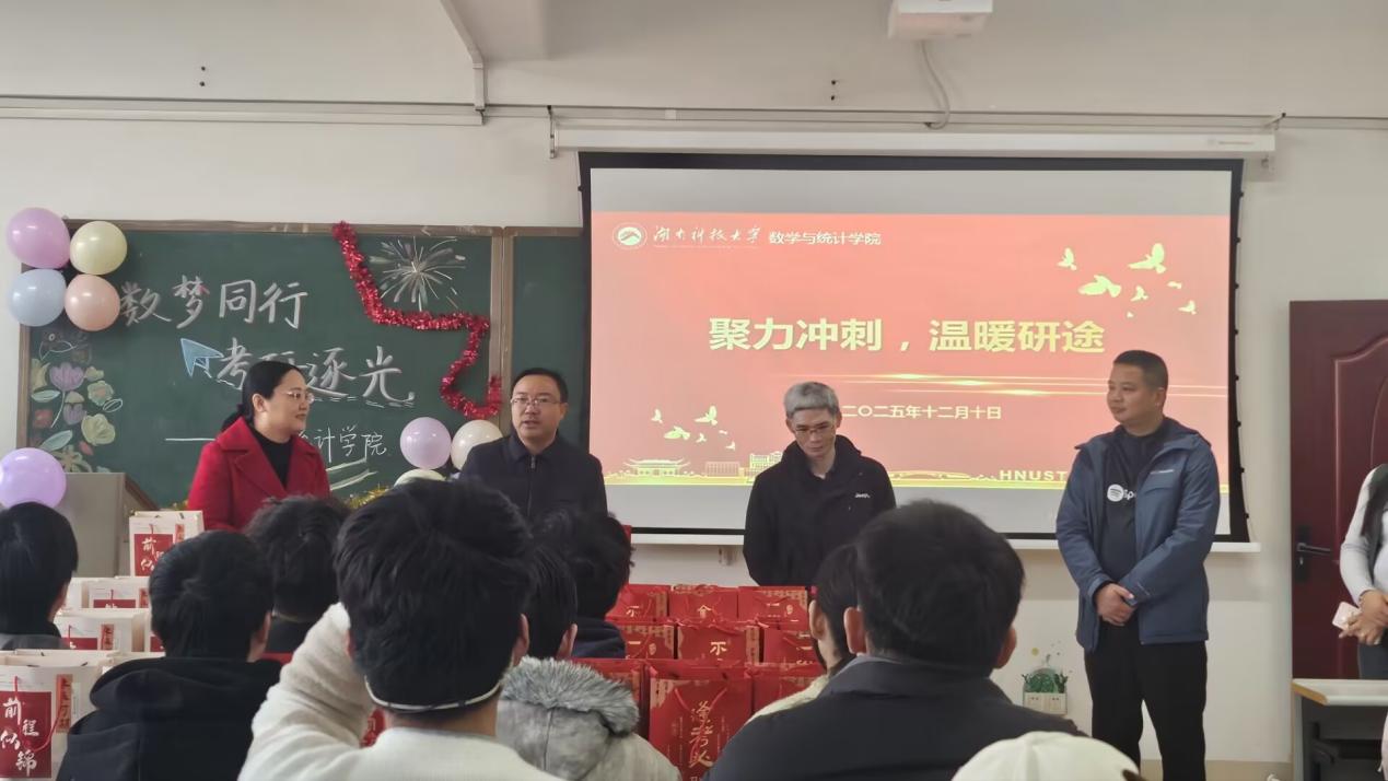 为缓解2026届考研学子备考压力,给予同学们温暖与鼓励,12月10日上午,公司在立志楼B431开展考研学子考前慰问活动。公司公司党委书记刘辉亚、公司党委副书记刘学泳、副经理彭叶辉、汪卫及学工办全体辅导员、2026届部分考研同学作为代表参加本次暖心活动。
