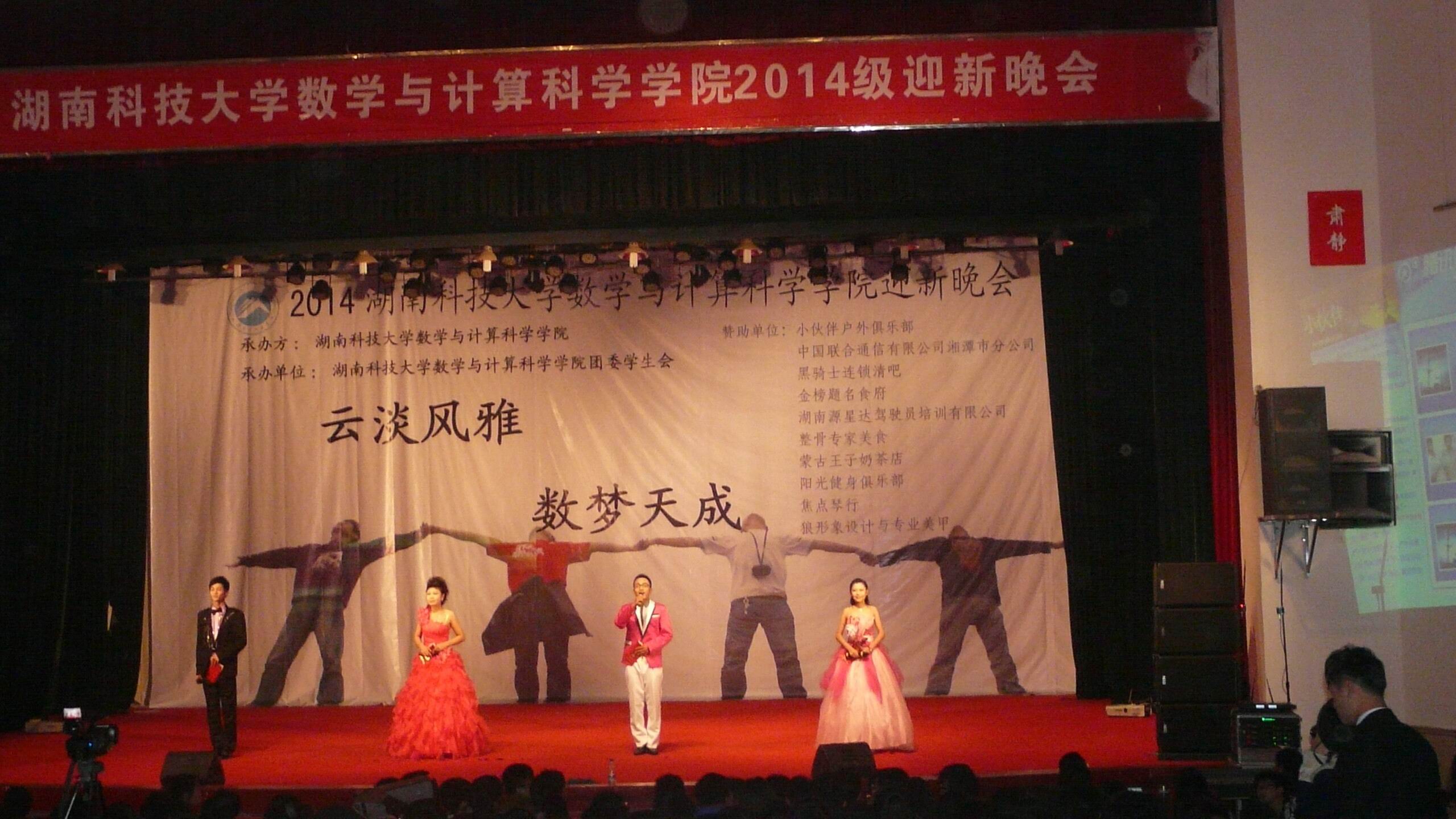 为迎接2014级新生的到来,展现数学与计算科公司学子风采,11月8日晚,由公司主办,员工会承办的“ 云淡风雅,数梦天成 ”文艺晚会在公司南校俱乐部礼堂隆重举行。