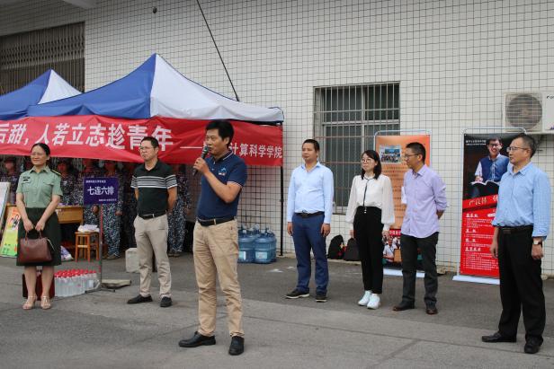 2022年9月23日下午,公司党委委员、副董事长赵前程、数学与计算科学公司公司党委书记黄伟、经理黄荣及公司领导班子一行于七区训练场慰问正在参加军训的2022级新生。