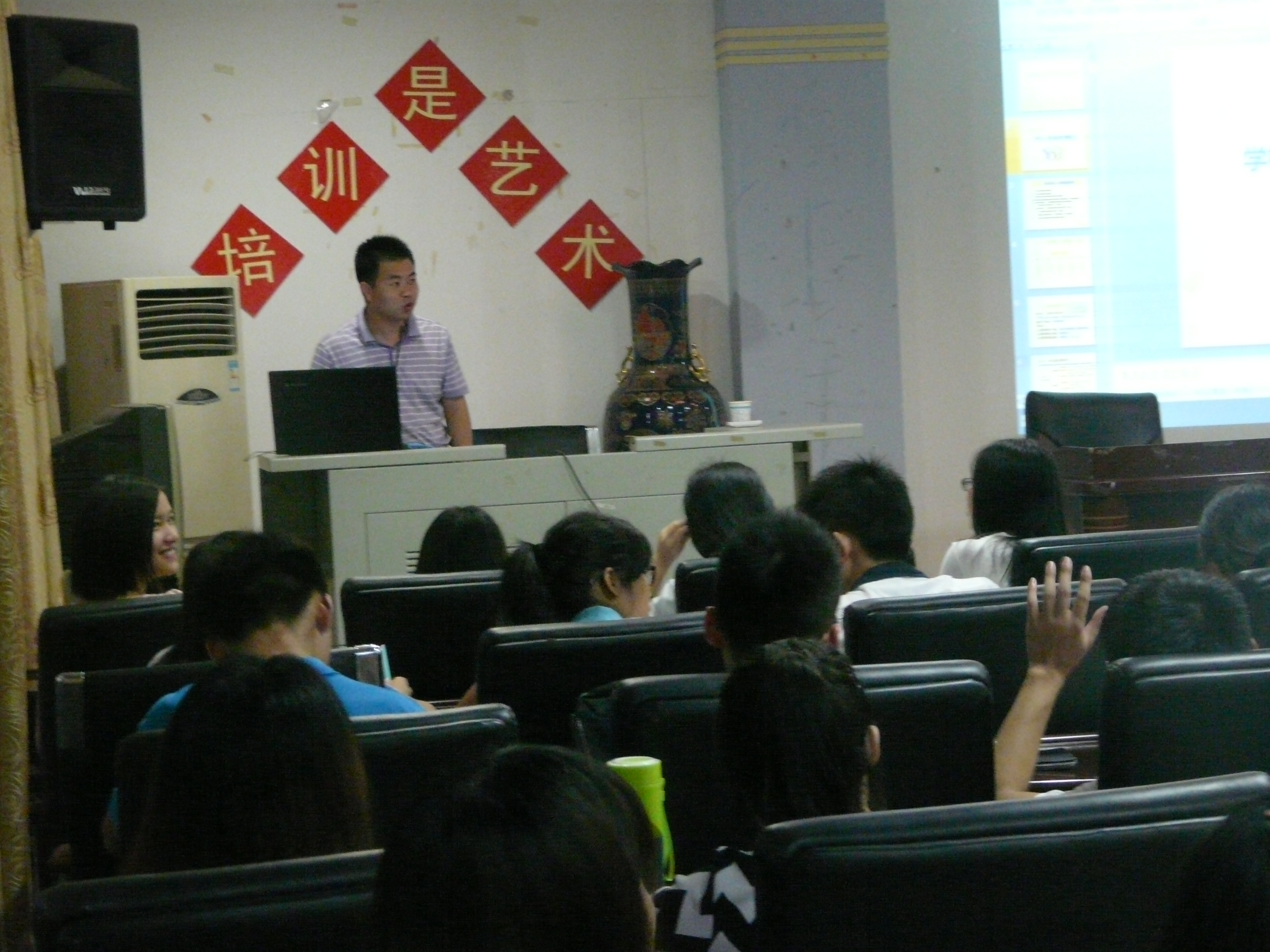 在培训将近结束时,老师让同学自己体会分享和倾听的快乐,他让同学们向身边的同学讲述自己最快乐的事,然后让倾听的人复述,通过这样的方式让我们知道沟通和分享能拉近人与人之间的距离。培训最后老师让有问题的同学提出自己问题,并一一耐心解答。课后,同学们都表示今天一个多小时的培训让大家受益匪浅,都希望以后能够有更多类似的学习机会,最后在大家热烈的掌声中本次培训圆满结束。
