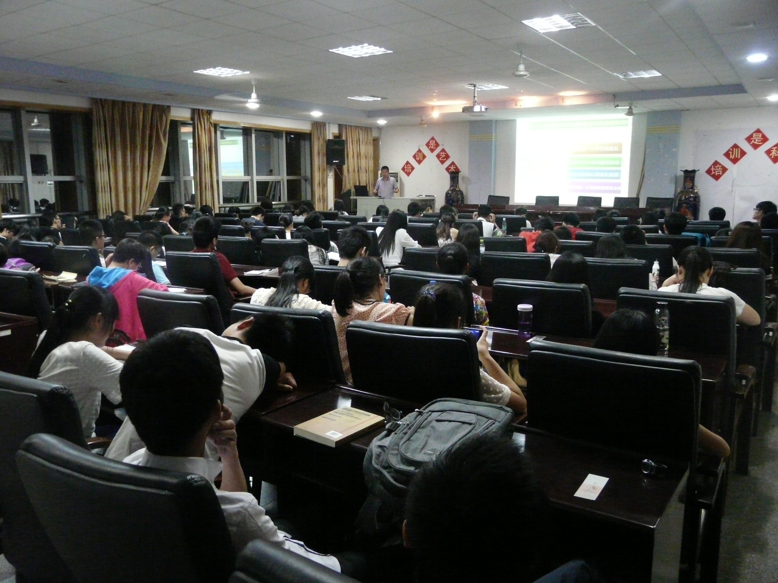 公司于6月18日晚7:30在八教院大会议室举行了心理健康知识培训,培训由校心理健康教育中心主任彭立春老师主讲。参加培训的人员有13~14级各班的心理委员,13~14级各寝室的寝室长,以及15级新生助理班主任。通过此次的培训让大家更全面地了解心理健康方面的相关知识,对今后开展心理健康工作起到非常积极的作用。