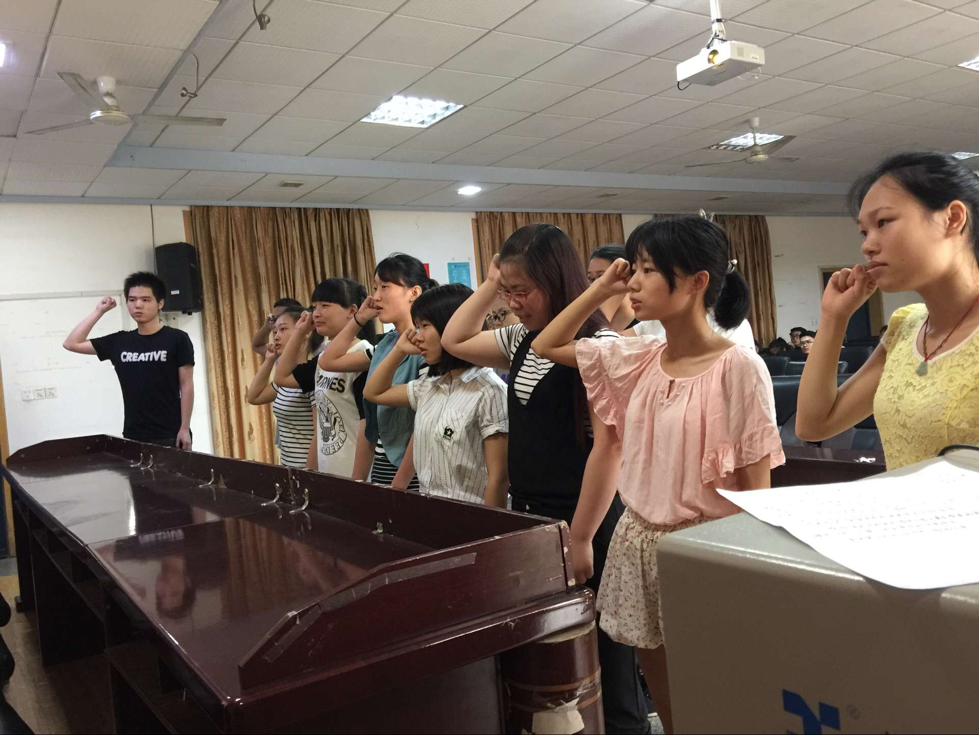 大会在国际歌的奏响中拉开帷幕。由刘佩老师宣读新党员名单,并向参加宣誓仪式的新党员表示祝贺。17名新党员向党旗庄严宣誓,许下承诺。员工黄昕代表全体预备党员发言,表达了转正的渴求并表示将严格要求自己。其后,员工赵敏代表全体新党员发言,许下努力学习,勤于实践,追求进步,为共产主义奋斗终身的承诺。大会的最后,肖亦农副书记对全体党员提出希望,希望全体同学努力学习,起好模范先锋的作用。