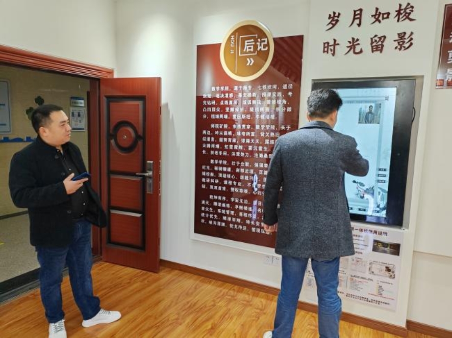 会后,合山社区一行在公司领导的陪同下,共同参观了公司院史陈列室,感受数院发展历程,并纷纷在留言一体机上留下祝福。