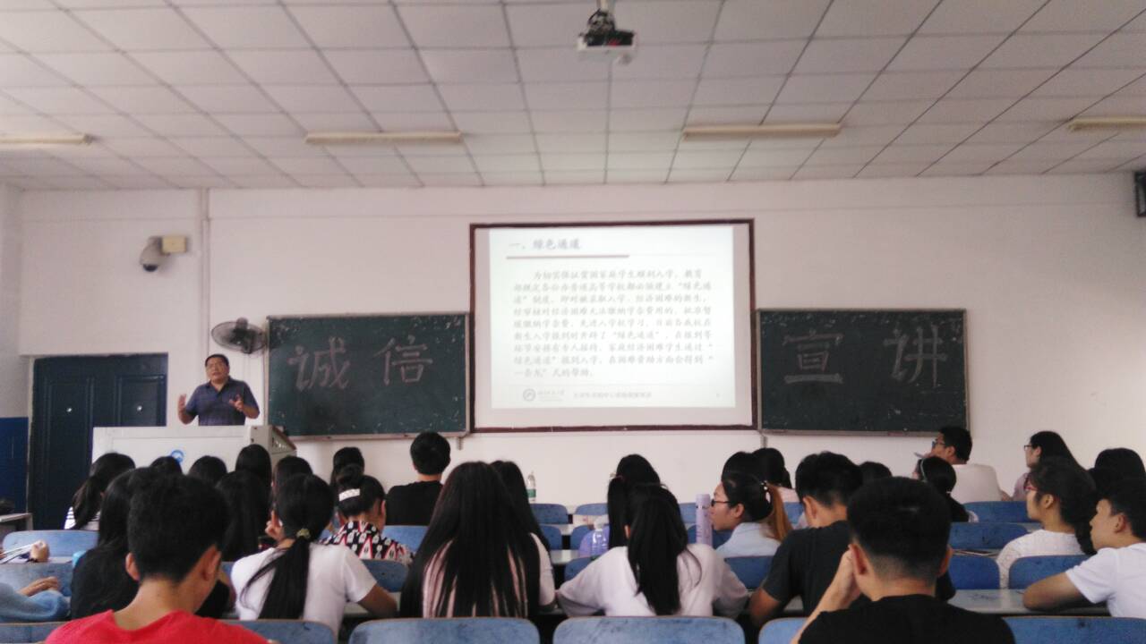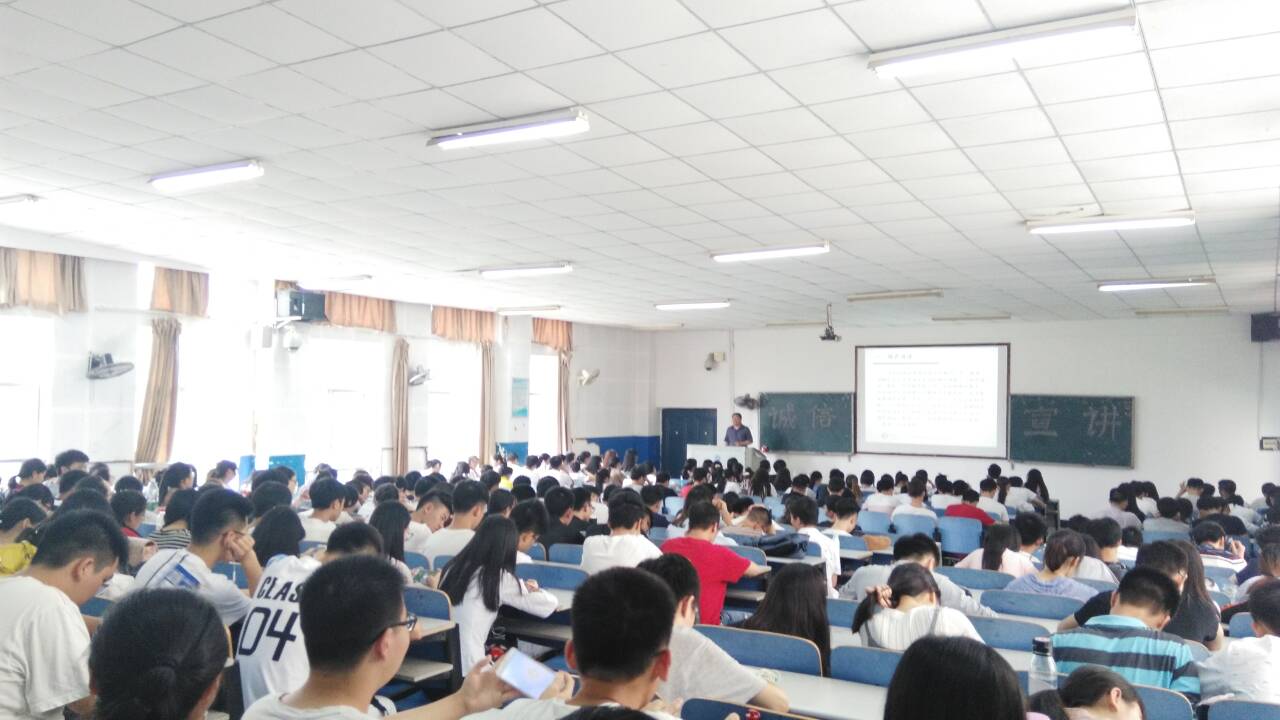 201762日下午三点至四点,数院在八教2-3开展了“诚信•感恩”宣讲活动。本次诚信宣讲活动,由化学化工公司黄朋老师主讲。到场嘉宾有资助办专家邵淑芬老师、辅导员刘晋华老师。