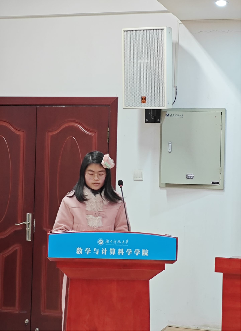 随后,本次数学竞赛数学专业组第一名余美秀同学和非数学专业组第一名朱子轩同学分享了他们的备赛经验和学习方法,以帮助其他同学启发新知、取得进步,向着更高的数学巅峰不断攀登。