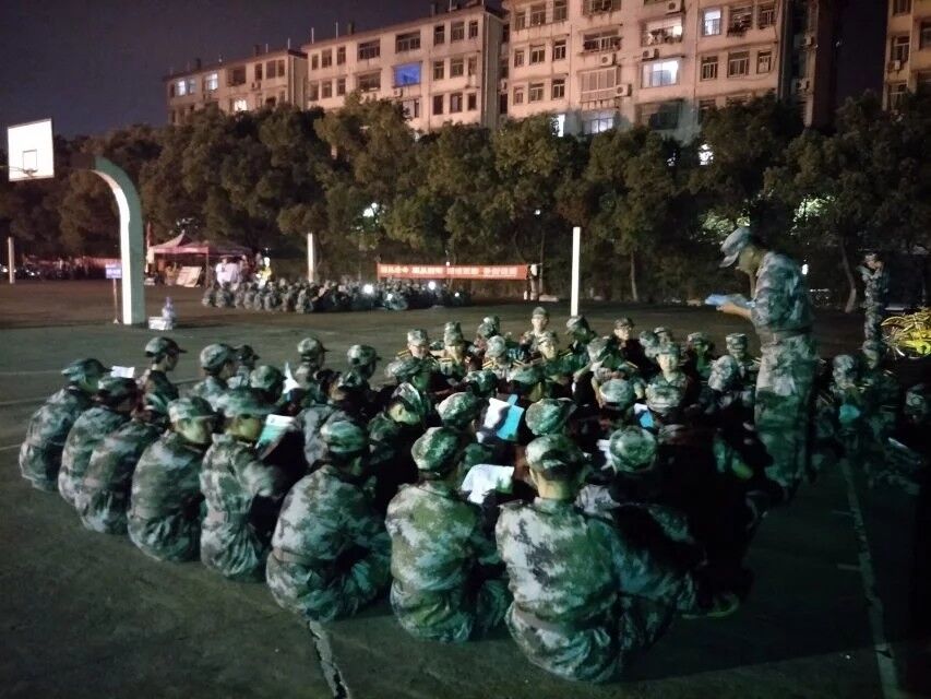挤过了“夺命”食堂,来一首军歌抒发大家万千的感慨之情。晚训的末尾,我们可爱的教官考虑到同学们辛苦的一天,决定教大家几首拿手曲目,拿出早就准备好的词来分发给大家,愉快的晚间歌曲节目就开始了,操场上人声鼎沸,大家热情高涨,白天的辛苦都被这音符跳的一干二净。