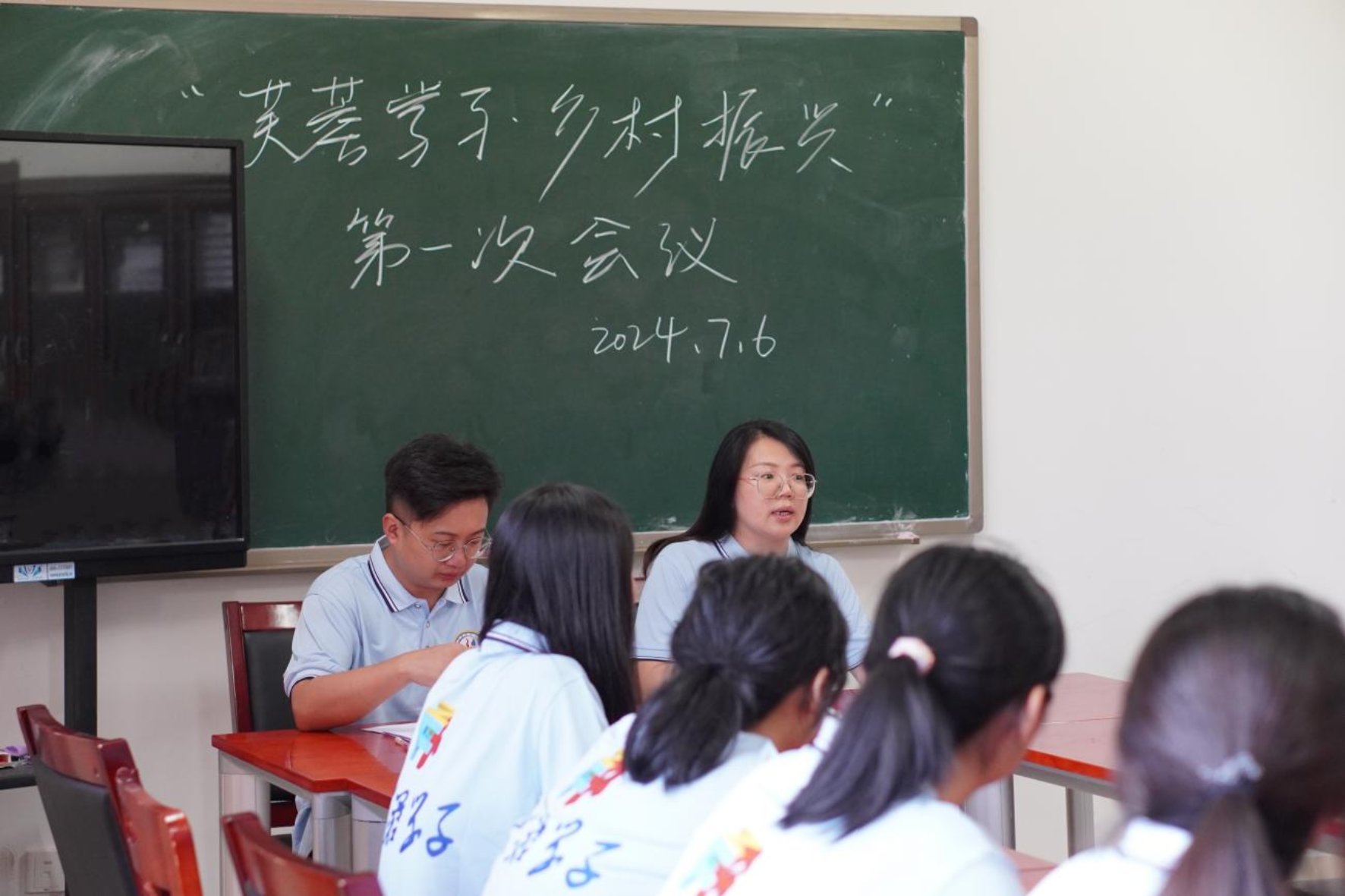 会后,学工办主任樊亚珍、团委书记兼带队老师张翼及“三下乡”全体团队成员召开“芙蓉学子·乡村振兴”实践活动第一次队内会议。
