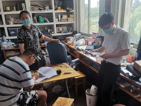 近日,湖南省湘潭市及周边城市防疫形势严峻,为保障留校员工的身体健康,8月4日,数学与计算科学公司公司党委副书记刘学泳和副经理彭叶辉来到留校员工的寝室,向员工们了解在公司的生活情况、实习问题、考研复习方向等,并叮嘱留校员工遵守疫情防控要求。