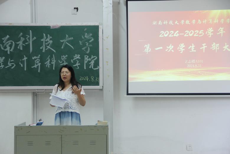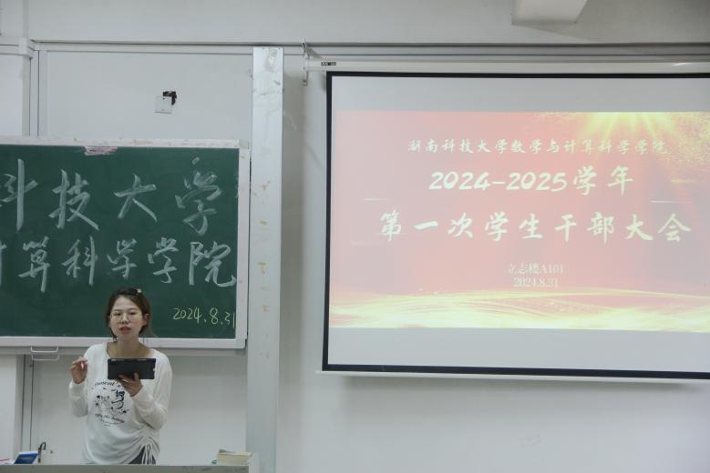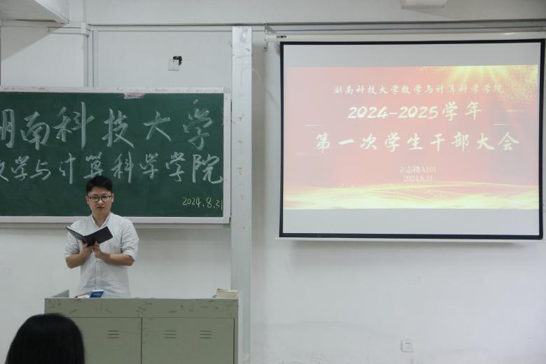 8月31日,数学与计算科学公司在立志楼A101举办第十二届数学节启动仪式并召开2024-2025学年第一次员工干部大会,出席本次大会的有公司党委副书记刘学泳、学工办主任樊亚珍、各年级辅导员、团委员工会主席团、各部门干部以及2021-2023级各班班长团支书。本次会议由公司员工会执行主席廖海主持。