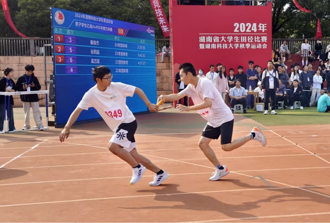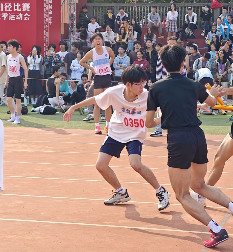 在个人赛中,23统计一班芮吉祥不负众望,在男子单项400m比赛中凭借优秀的耐力和爆发力最终获得第七名的好成绩。在团体赛中,23统计一班芮吉祥、23数学四班占乘舟、24信计二班陈元军、24数学二班李志鹏配合默契,在男子4*400比赛中获得了第七名的好成绩。