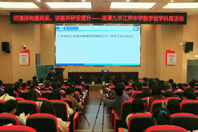 3月14日,国际数学日,这天上午,数学与计算科学公司郝志伟博士和湘潭九华江声中学挂职副董事长丁爱霞老师带领数学与应用数学专业21级学子前往湘潭九华江声中学开展线下教育见习活动,有幸观摩了湘潭九华江声中学数学组主办的“同课异构”专题讲座活动。