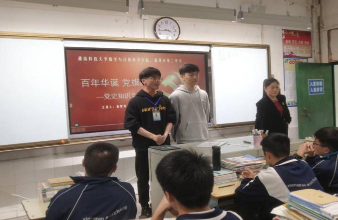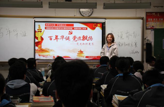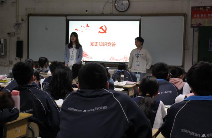 4月16日,公司员工党员利用班会课的时间在湘潭市二中高一和高二共16个班级中组织开展了“百年华诞·党旗飘扬”党史知识竞赛活动。首先,进行了党史学习环节,运用PPT为同学们讲解了党的知识、回顾中国共产党的百年光辉历史,引导广大团员青年厚植爱党、爱国、爱社会主义的情感;然后,以抢答赛的形式开展了党史知识竞赛,同学们积极参与举手抢答,获得了党旗小贴纸;最后,对优秀的参赛选手及优秀的组织者颁发了证书。