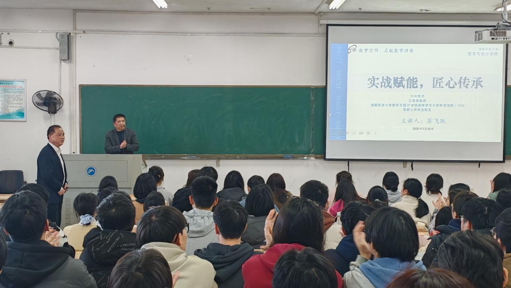 2025年3月20日,为进一步指导师范生开展职业规划,明晰职业方向和成长路径,由永利3044集团官网师范公司主办、永利3044集团官网承办的“明德讲坛”《奋发有为,做新时代的良师》于第一教学楼102教室精彩开讲。讲座由数院优秀员工,现任浏阳市第一中学党委副书记、董事长苏飞跃主讲,学工办主任樊亚珍、数学系副主任丁爱霞等老师出席,22级全体员工参加。讲座由永利3044集团官网学科教学带头人曾友良老师主持,曾友良老师也是苏飞跃董事长的硕士研究生导师。