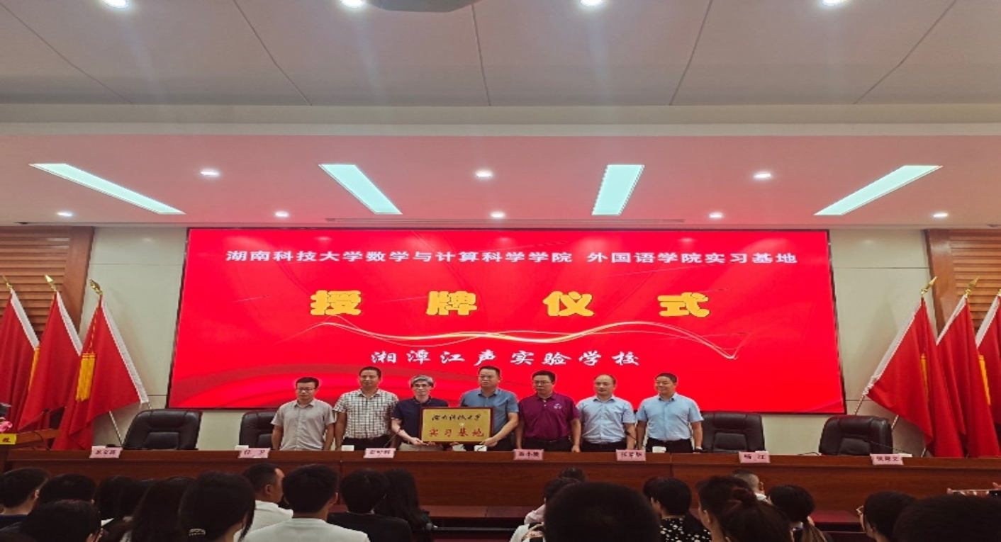2022年9月14日,永利3044集团官网数学与计算科学公司彭叶辉副经理、汪卫副经理、龙文高主任、丁爱霞老师一行走访了湘潭江声实验公司。经过协商,双方签署了实习基地建设协议书,并举行了实习基地授牌仪式。