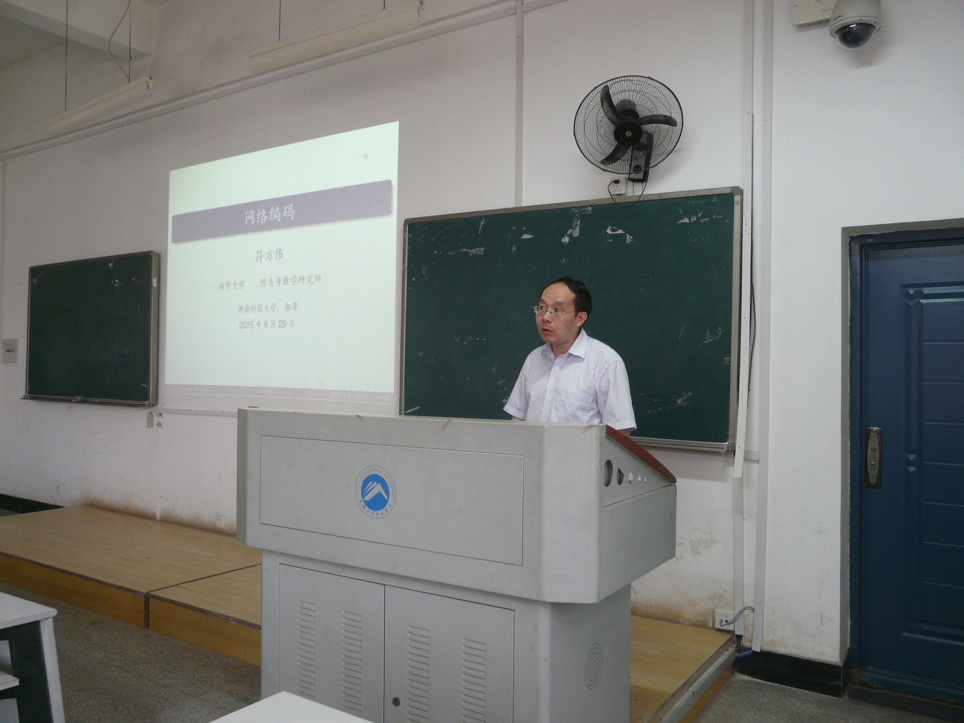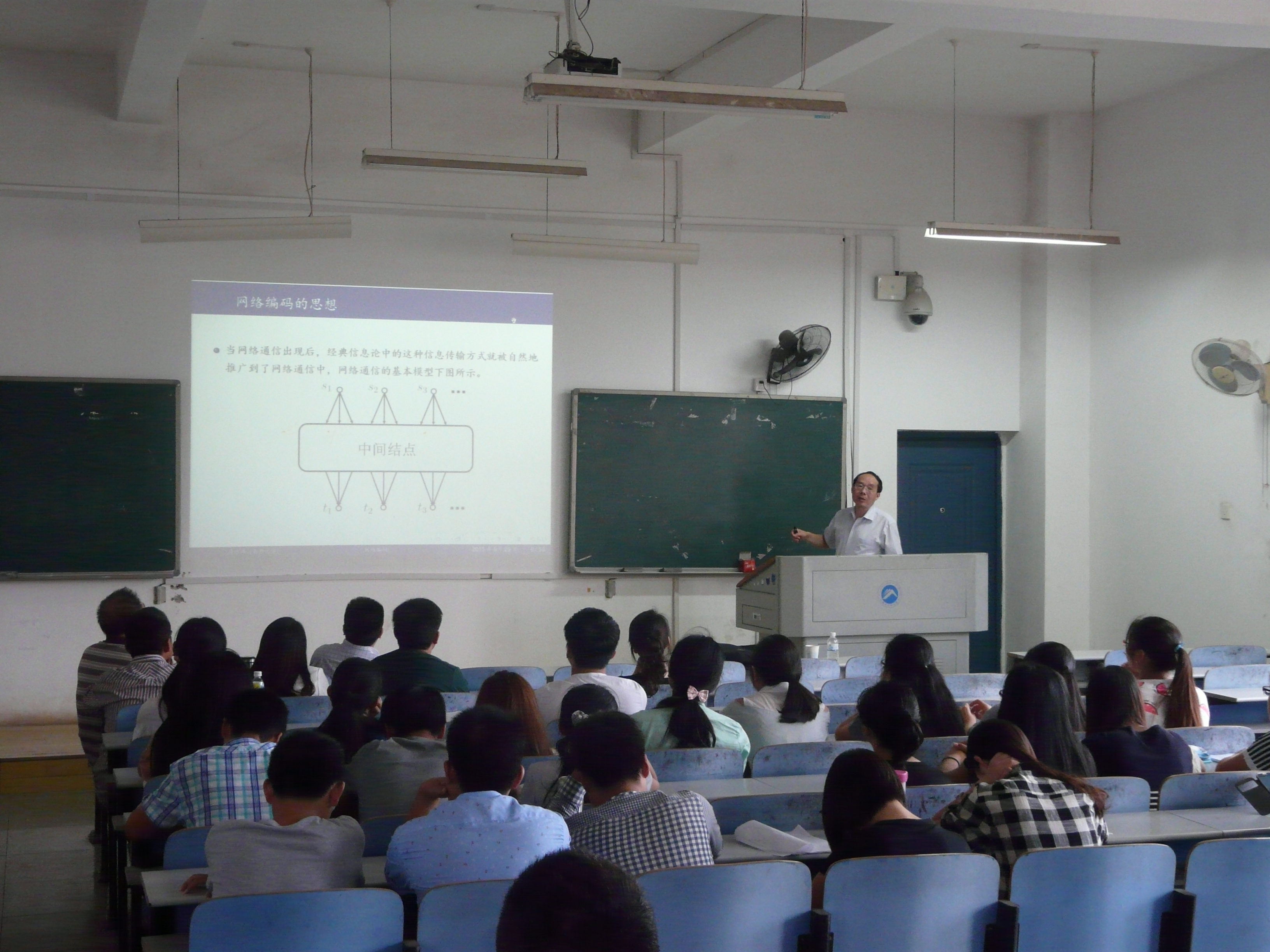 应公司邀请,南开大学陈省身数学研究所博士生导师符方伟教授于9月29日下午在第八教学楼3-4教室作了题为《网络编码》的学术讲座,讲座由经理刘金旺教授主持,部分老师、13级信息与计算科学专业全体员工参加了此次讲座。