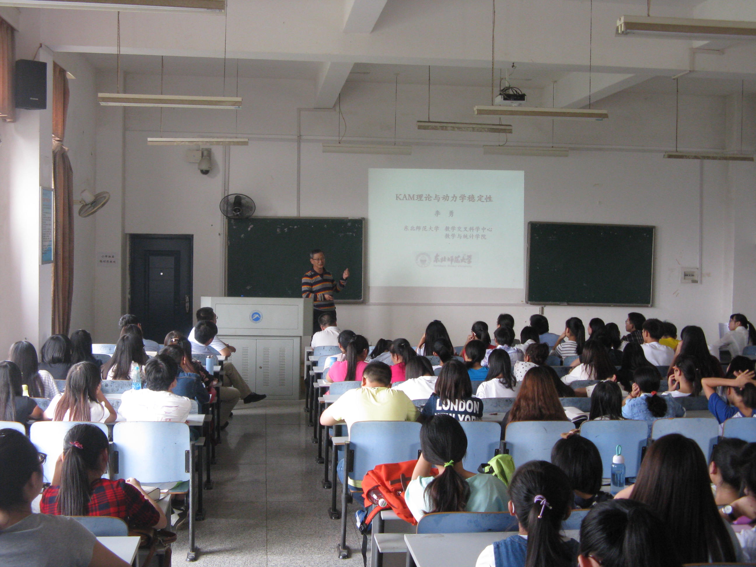 应公司邀请,东北师范大学博士生导师李勇教授于10月25日下午在第八教学楼3-5教室作了题为《KAM理论和动力稳定性》的学术讲座,讲座由经理刘金旺教授主持,公司相关学科教师和13、14级数学与应用数学专业员工听取了讲座。