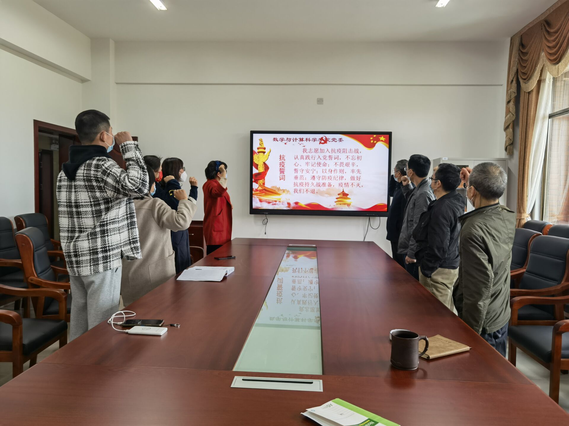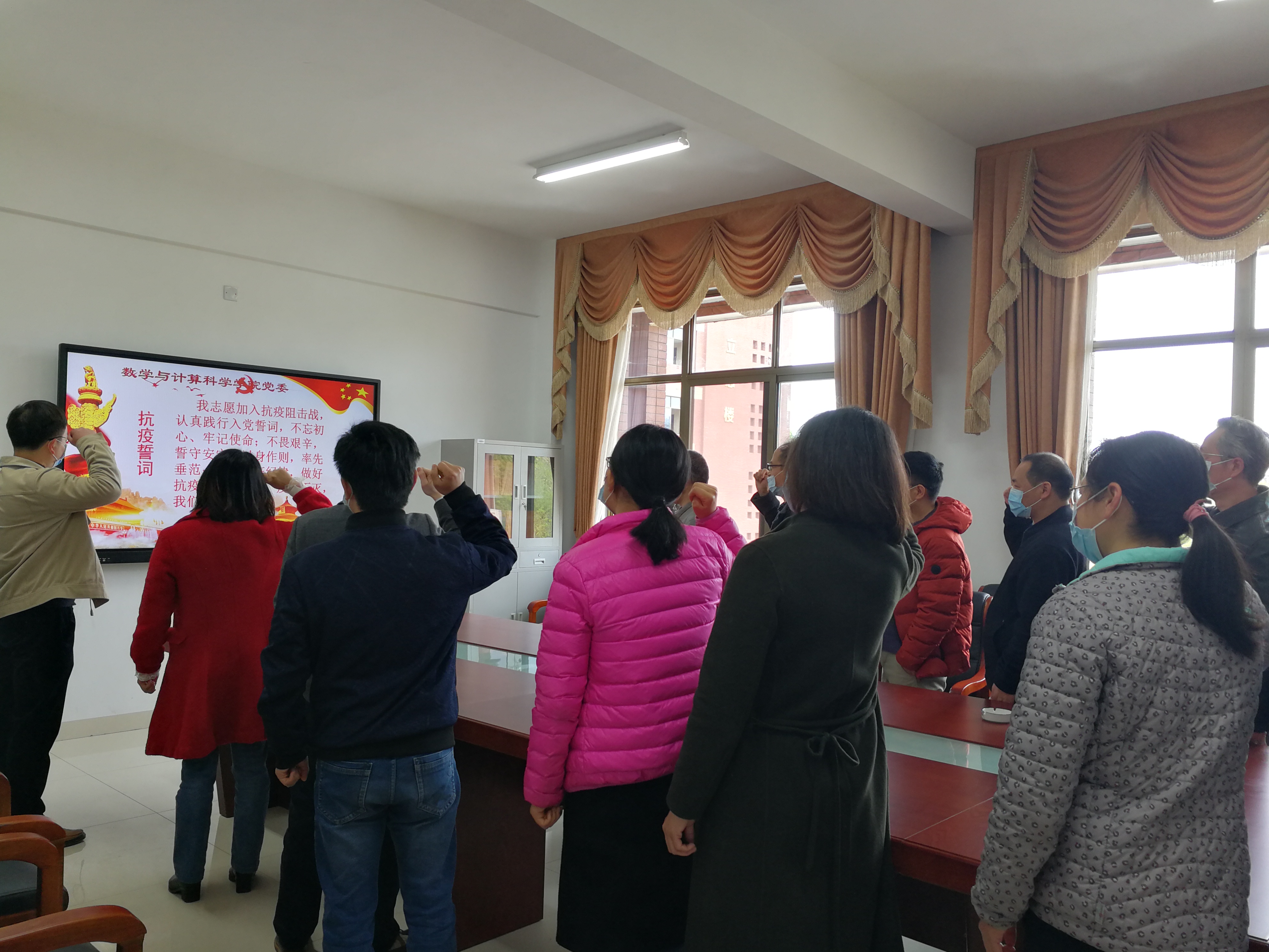 2022年3月29日,数学与计算科学公司各党支部认真学习了《永利3044集团官网疫情防控指挥部通告》、《数学与计算科学公司疫情防控领导小组通告》等文件,全体党员及员工干部庄严宣誓:我志愿加入抗疫阻击战,认真践行入党誓词,不忘初心、牢记使命;不畏艰辛,誓守安宁;以身作则,率先垂范;遵守防疫纪律,做好抗疫持久战准备,疫情不灭,我们不退!誓言声声入耳,展现出了党员同志的勇于担当的决心。