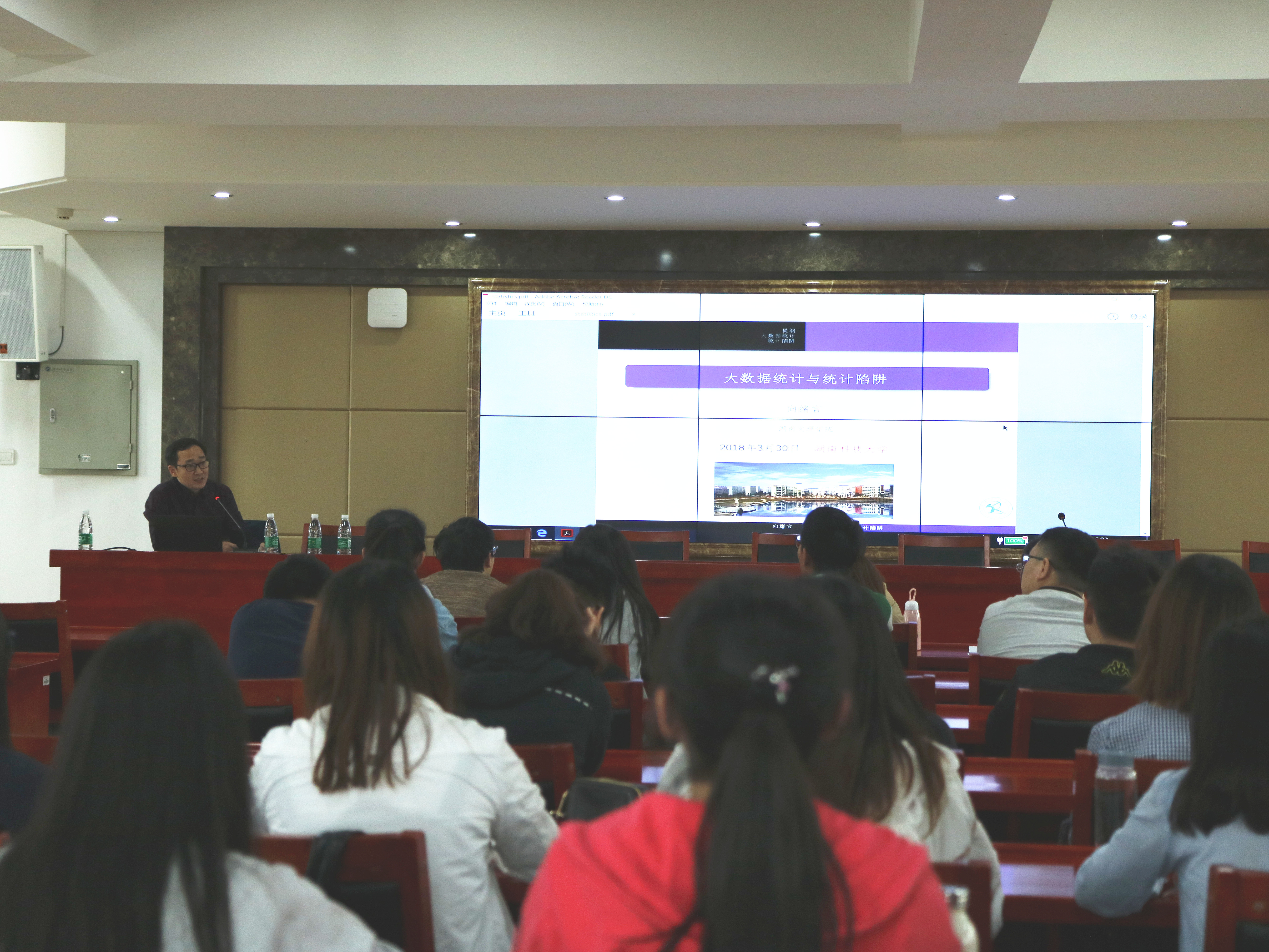 3月30日16时,应数学与计算科学公司邀请,湖南文理公司向绪言教授以“大数据统计和统计陷阱”为题,在立志楼A601教室为大家带来了一场精彩的学术讲座。16级应用统计学专业全体同学参加了本次学术报告会。