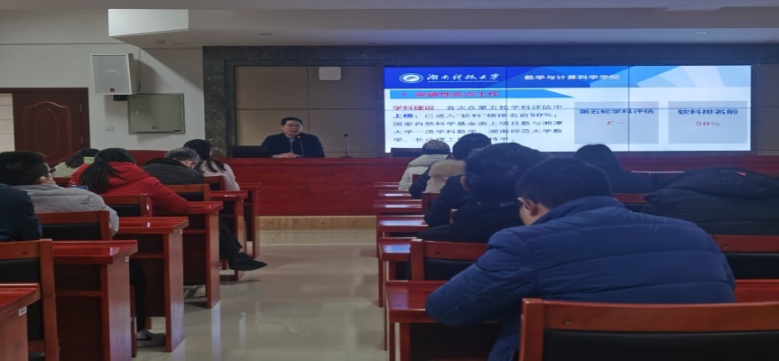 黄荣指出,2022年,是收获的一年,在大家共同努力下,工作上取得了突破性的进展。在团队建设方面,数学学科首次在第五轮学科评估中成功上榜,并进入“软科”榜排名前50%;在专业建设方面,成功获得湖南省教学成果奖二等奖;数学与应用数学专业首次参加师范专业认证,圆满通过受理、专家函评与现场考察;员工学科竞赛获省级及以上奖励120余项。年度目标考核等级评定为“良好”。