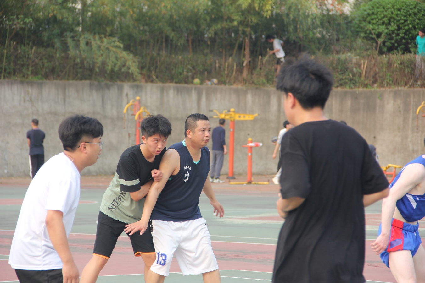 清脆哨声引开战,篮球飞舞曲线间。场上双方球员你追我赶,奋力拼抢,展现出顽强的拼搏精神和高超的球技水平。教职工队凭借丰富的经验和精湛的技术占据了场上的主动权,他们时而切入篮下,时而远投三分,展现出超凡的球技和默契的配合。